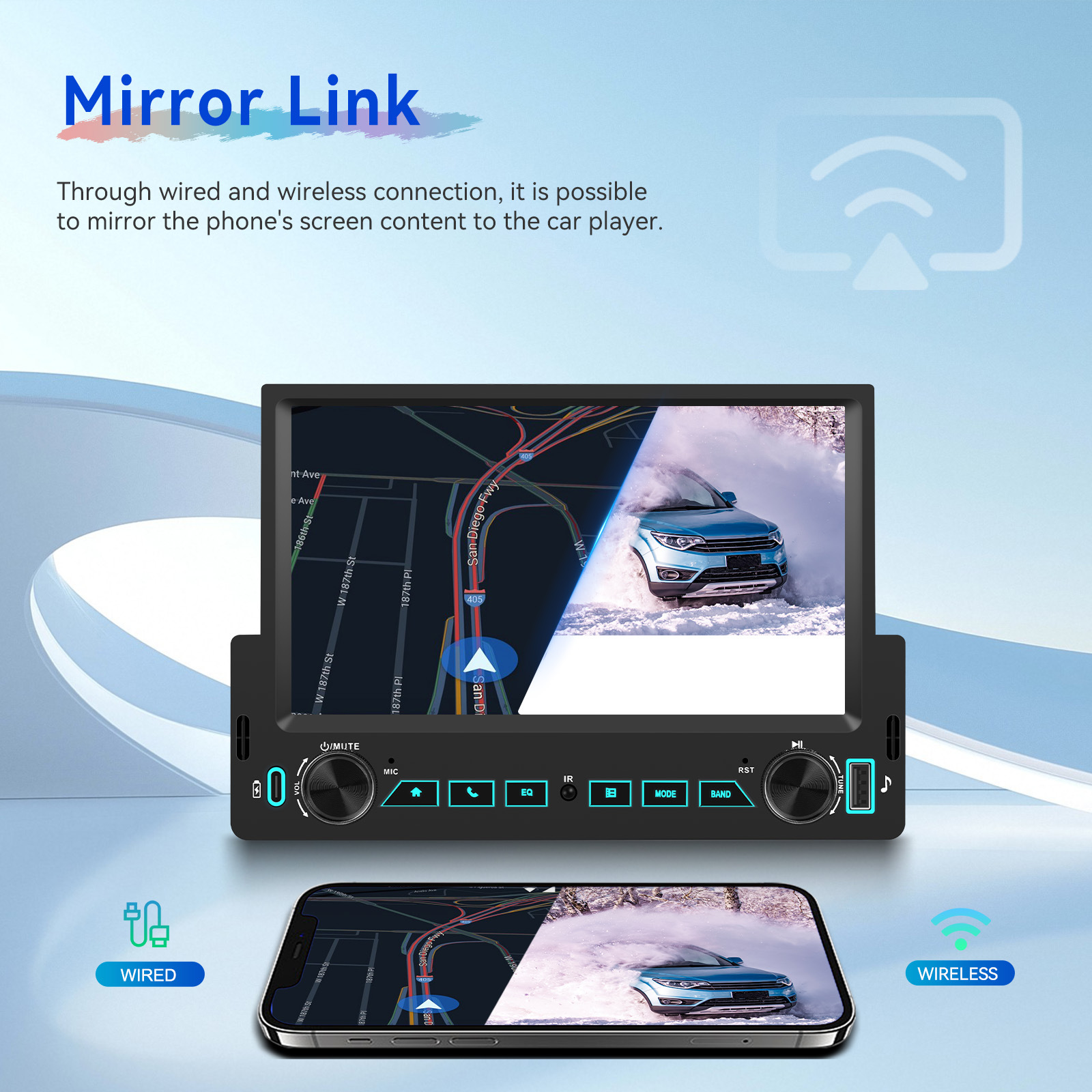 ●Mirror link: Support Android/iphone mirror link, sync to the car screen through the original USB cable of the mobile phone or connect to the mobile hot pot (Apple supports wireless/Android supports wireless and wired)
