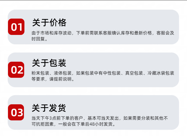 3. 下单注意:由于市场和库存波动,下单前需联系客服确认库存和最新价格。