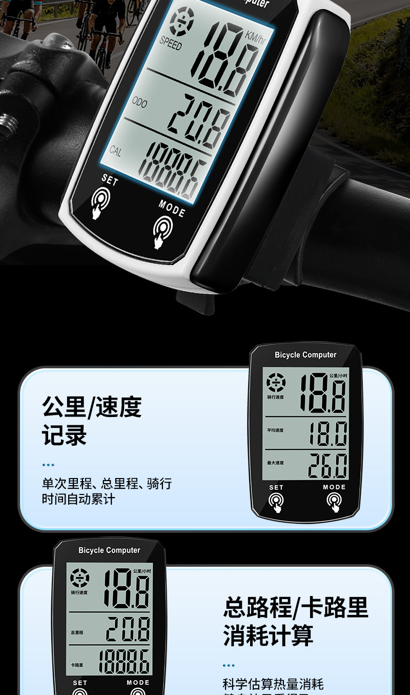 Оптовый проводной многофункциональный спидометр для велосипеда с водонепроницаемостью, подсчетом калорий и температуры