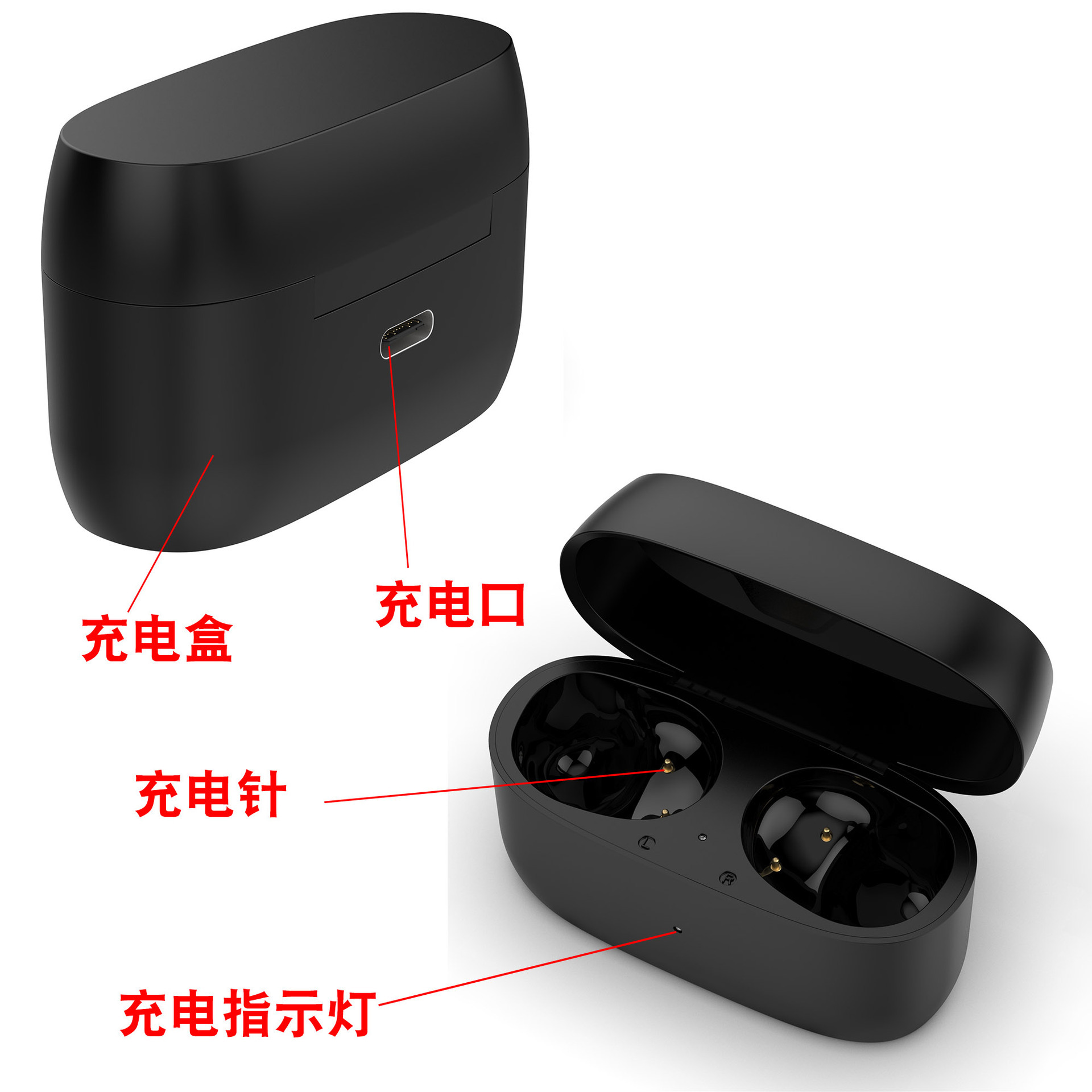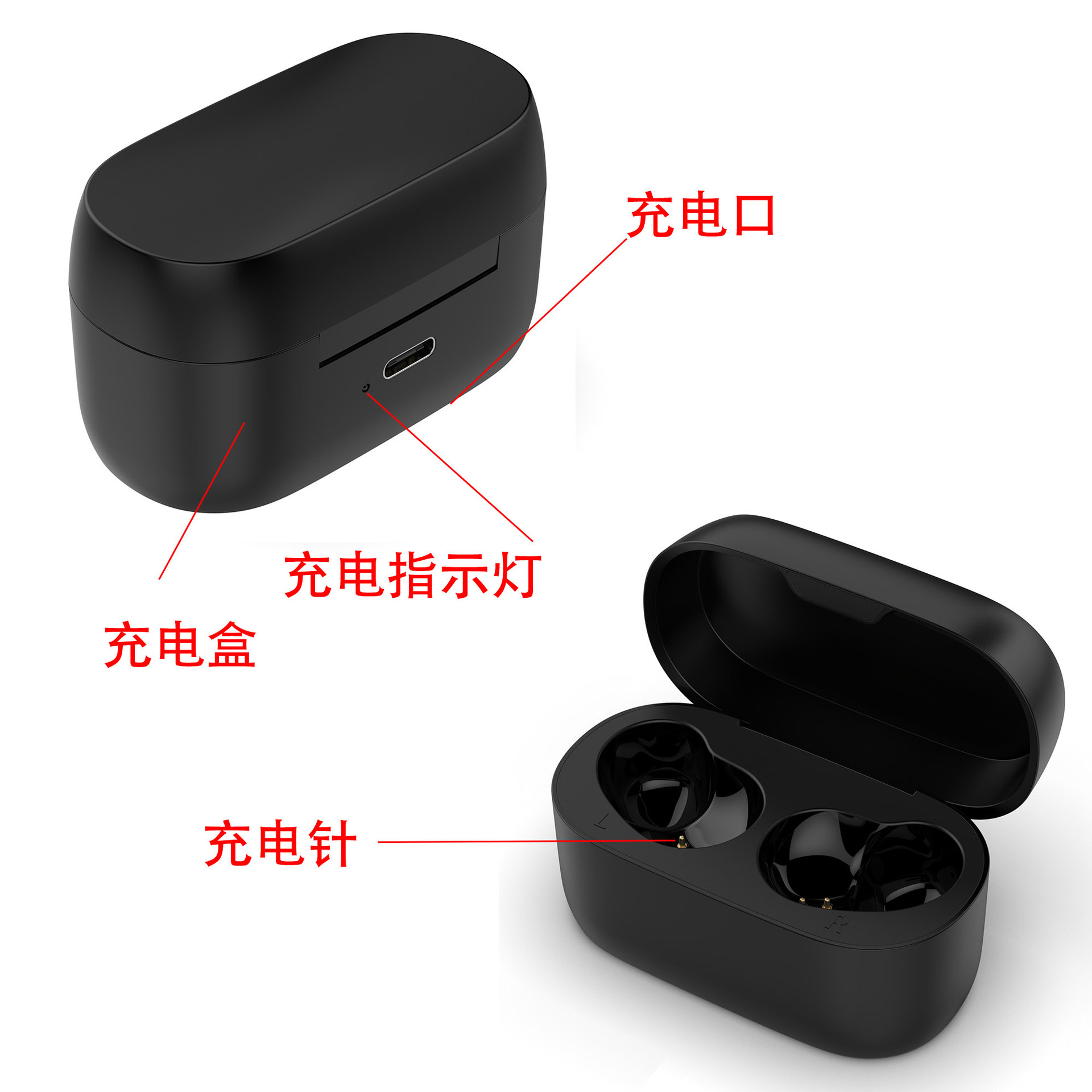 耳机充电指示灯状态:耳机自带指示灯,充电红灯,充饱绿灯