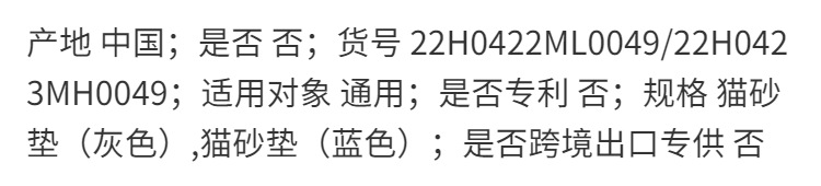 ![]() | Cat litter mat (blue) | Default item | ¥33.75 / ≈ 408 ₽ | 56 | 5973253484737 |