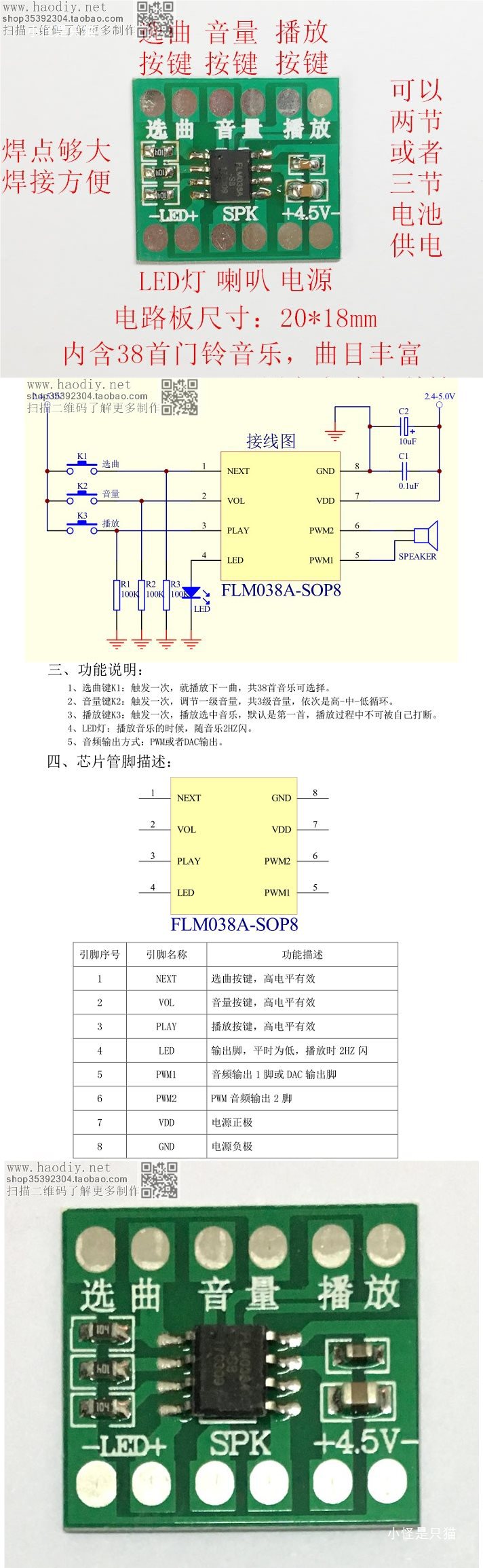 38 детская музыкальная чип-плата, игрушечный дверной звонок, цифровая DIY маленькая музыкальная шкатулка-плеер