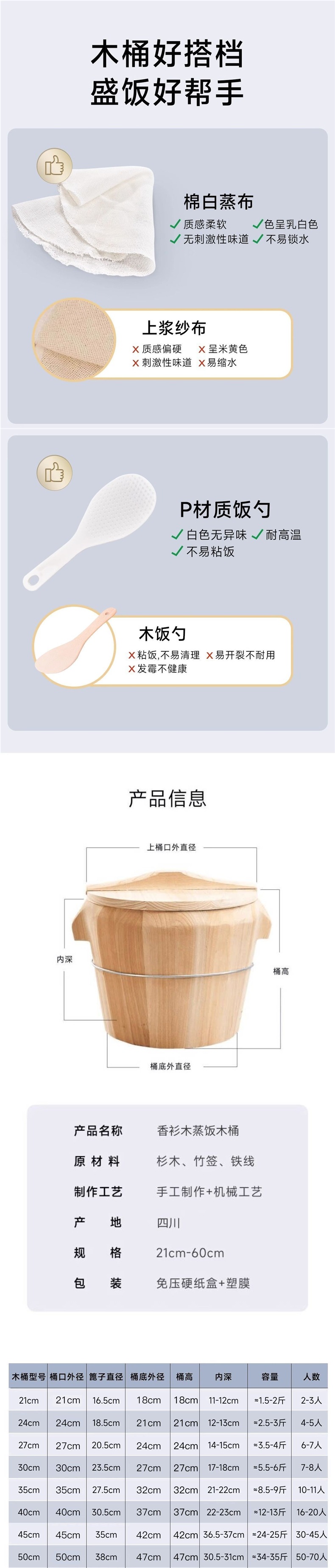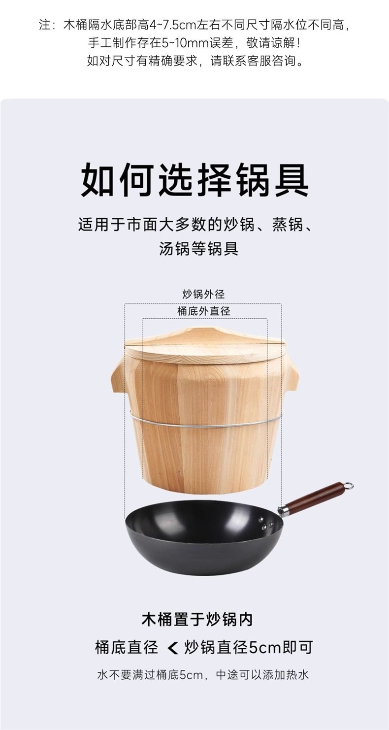 ![]() | Wooden bottom bucket with wooden lid and handle, rice spoon + steaming cloth + instruction manual included | Upper diameter 45cm, recommended for 30-45 people | ¥210.6 / ≈ 2 537 ₽ | 1000 | 6133391359935 | |