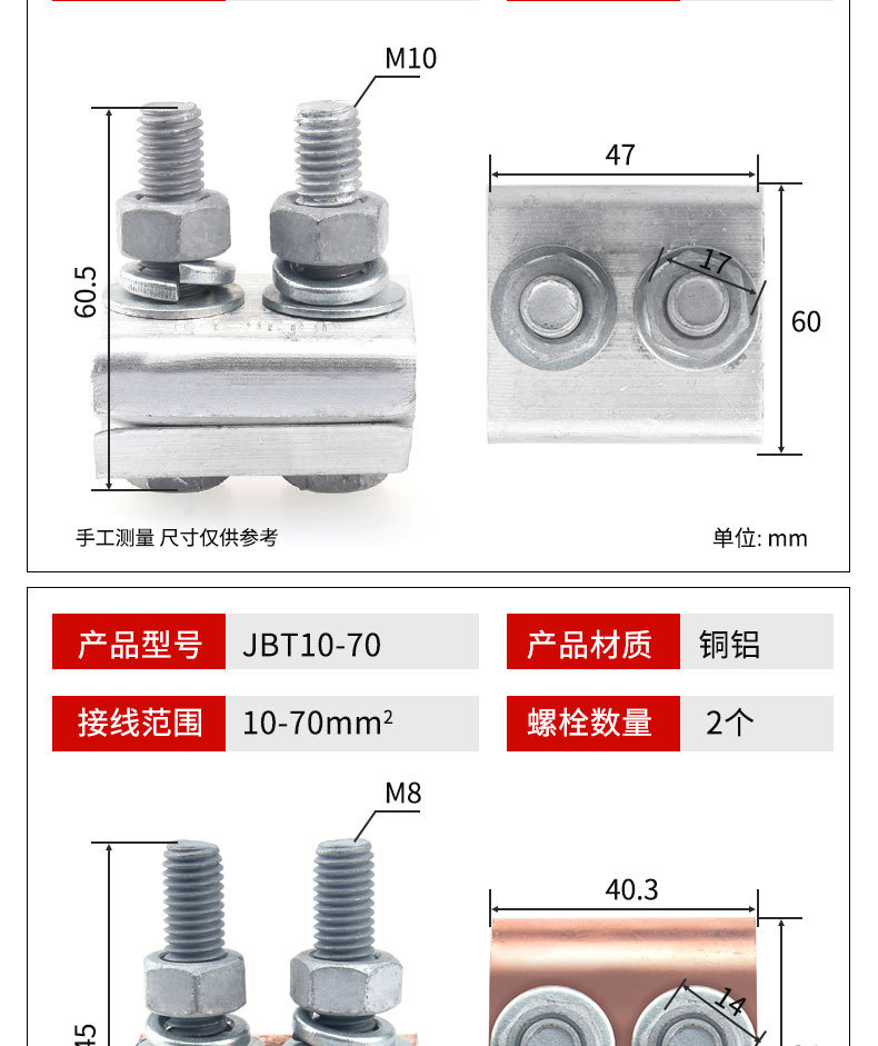 ![]() | Jbtl10-70 copper aluminum clip (with shell) | ¥17.81 / ≈ 215 ₽ | 200 | 5970417545482 | |