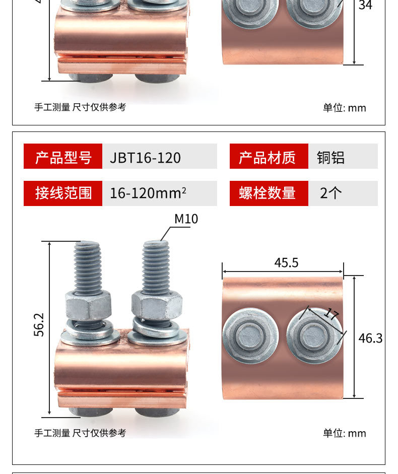 ![]() | Jbtl16-120 copper aluminum clip (with shell) | ¥22.7 / ≈ 274 ₽ | 200 | 5970417545484 | |