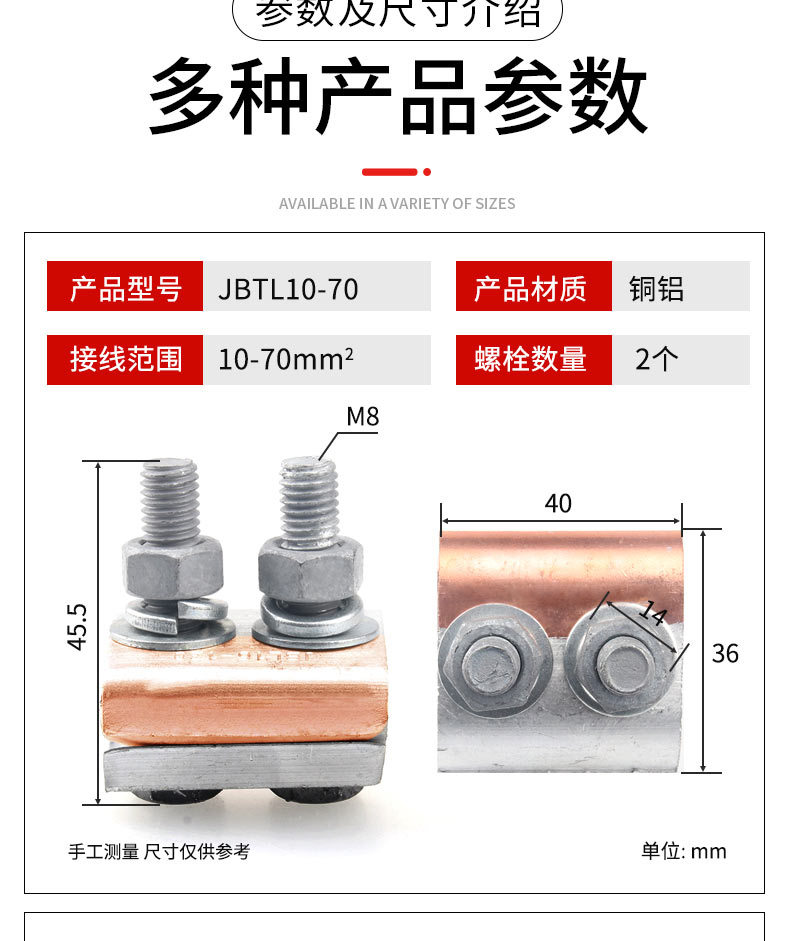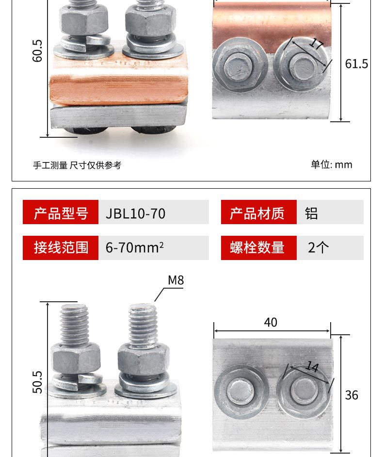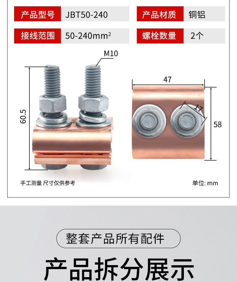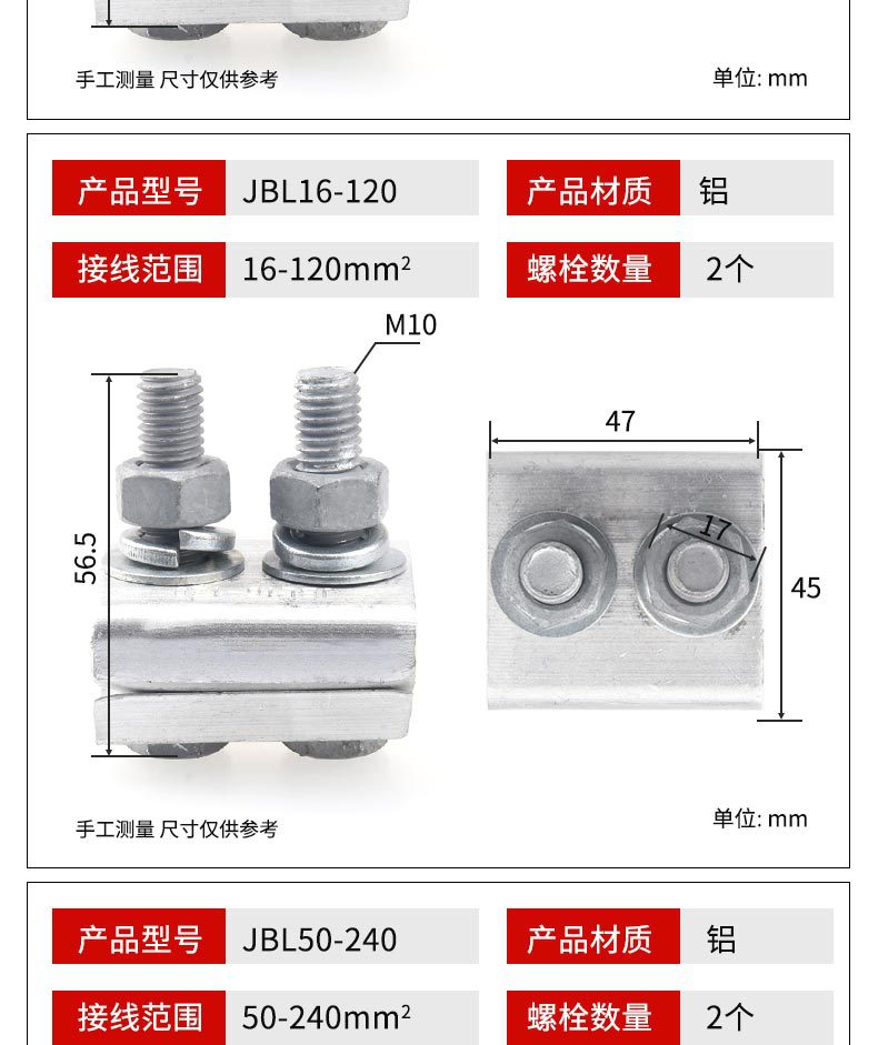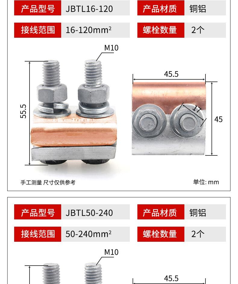 ![]() | Jbtl50-240 copper aluminum clip (with shell) | ¥32.18 / ≈ 388 ₽ | 200 | 5970417545486 | |