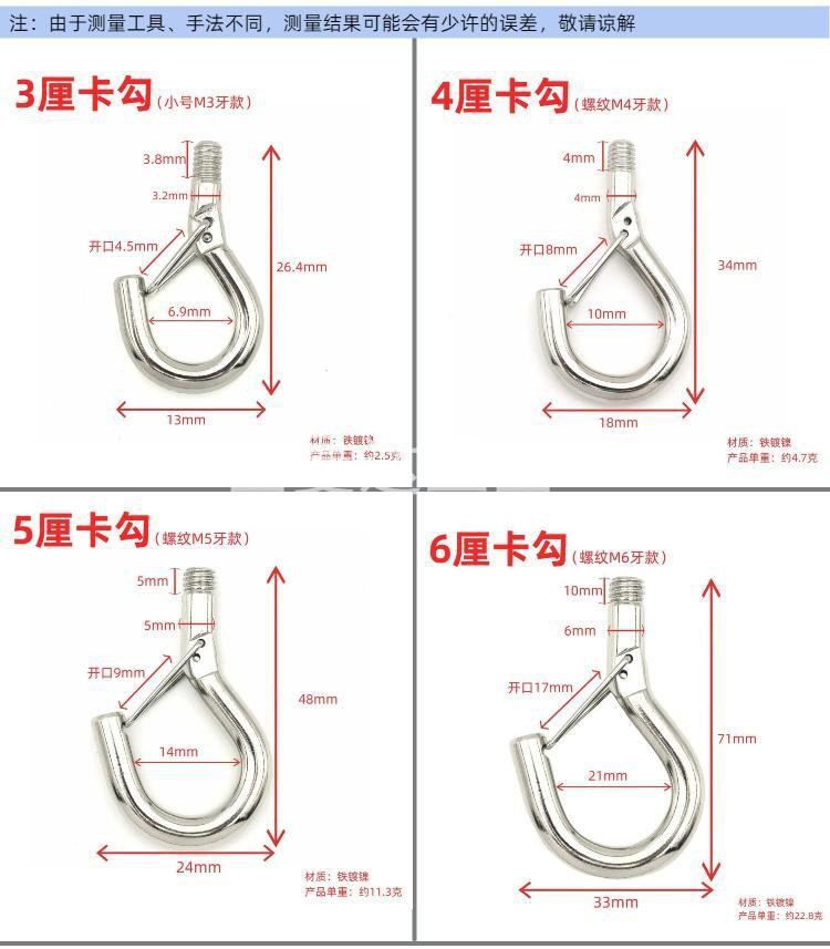 📦 | 4cm hook (suitable for 1.5mm wire rope) | ¥1.8 / ≈ 22 ₽ | 200 | 5969205204023 | |