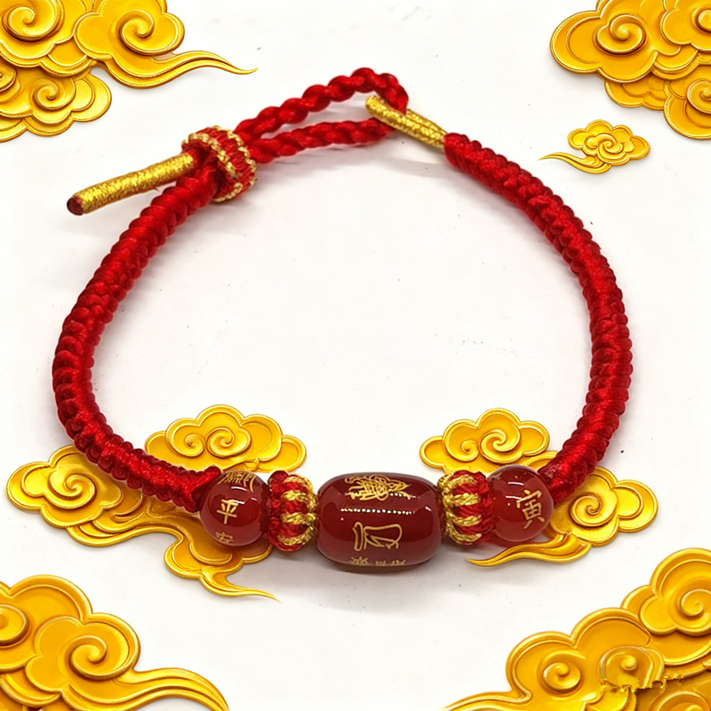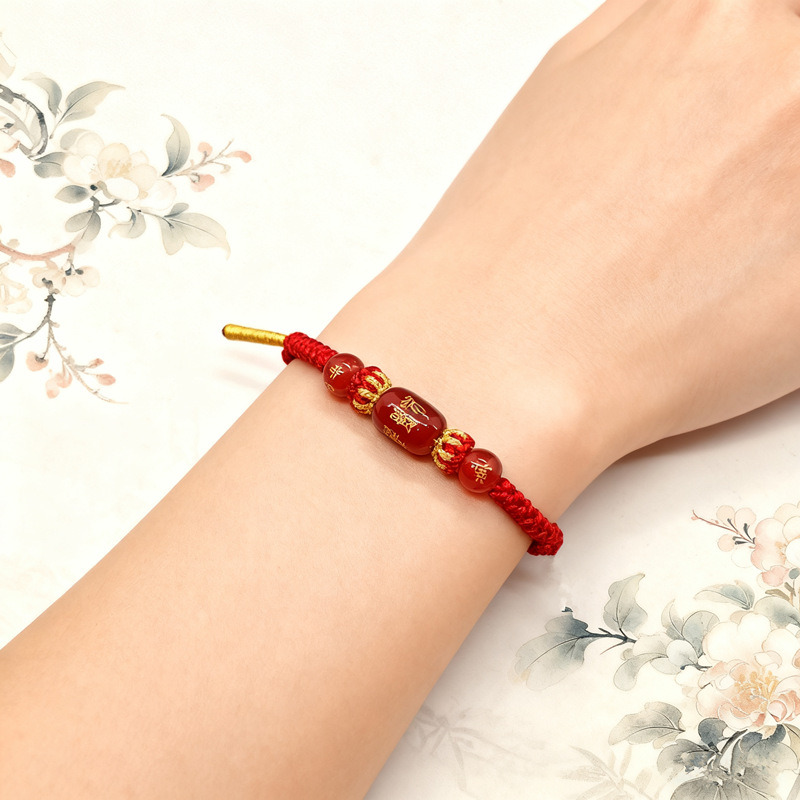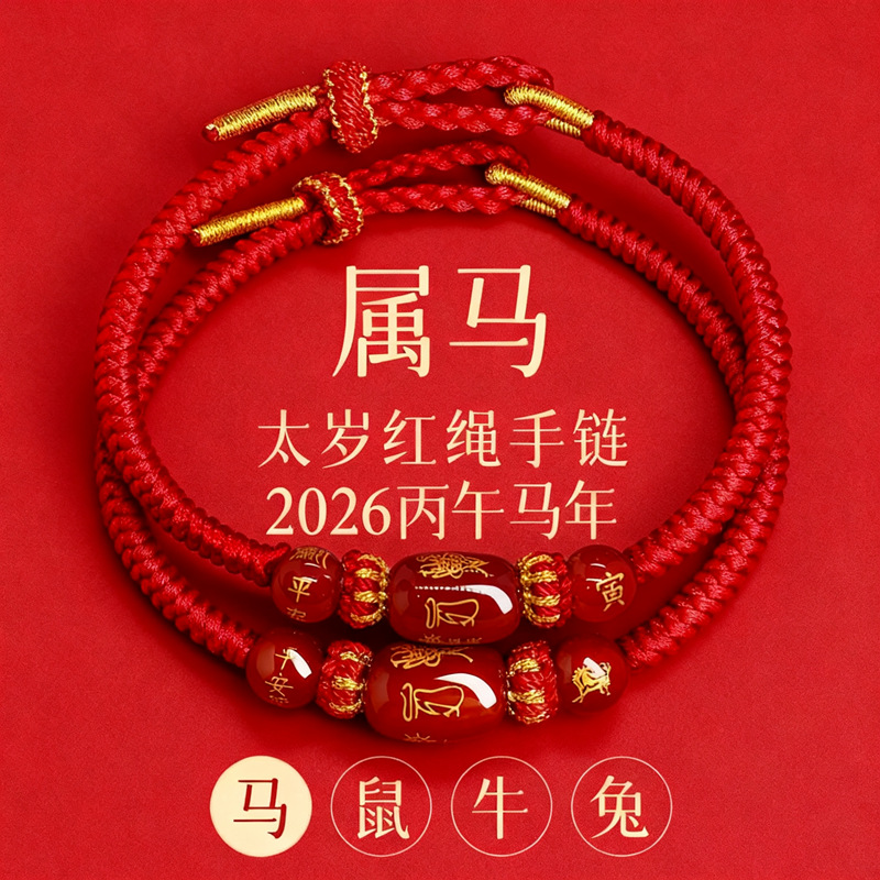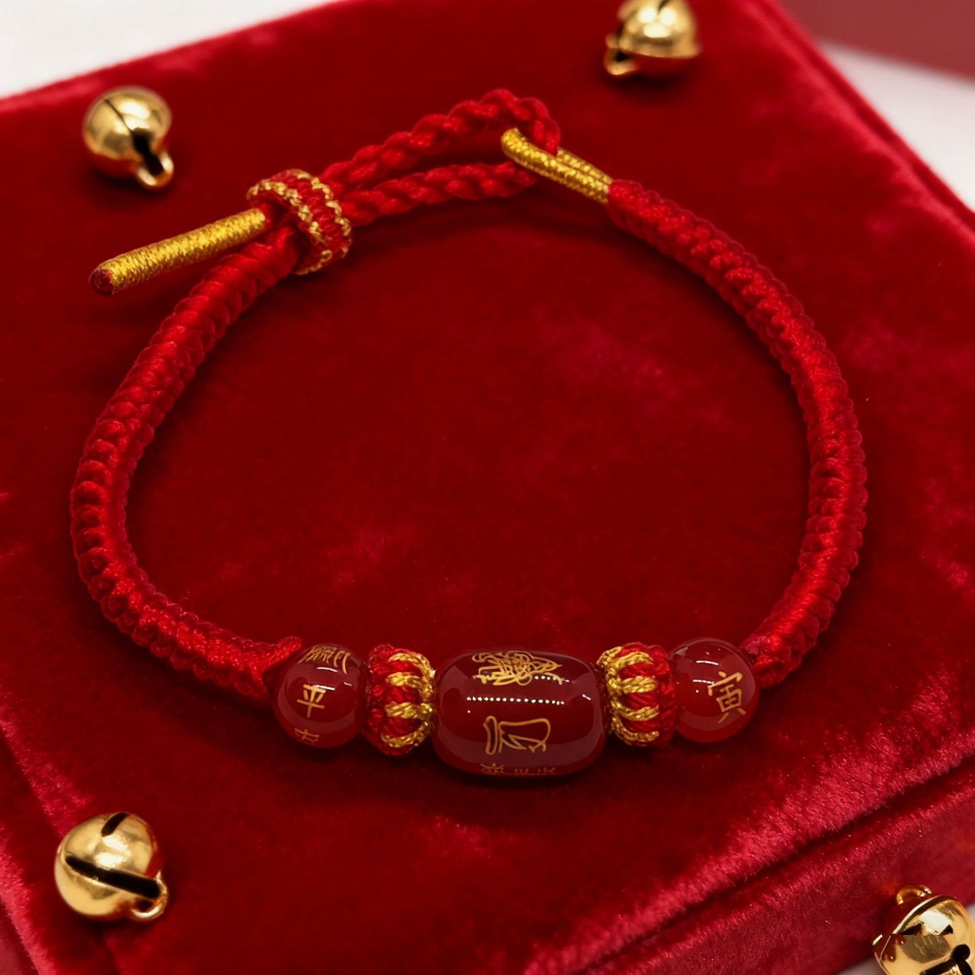 Браслет из красной веревки на 2026 год Лошади, удача с агатом, мужская модель, ручная работа с горы Путуо