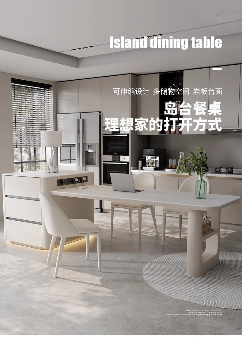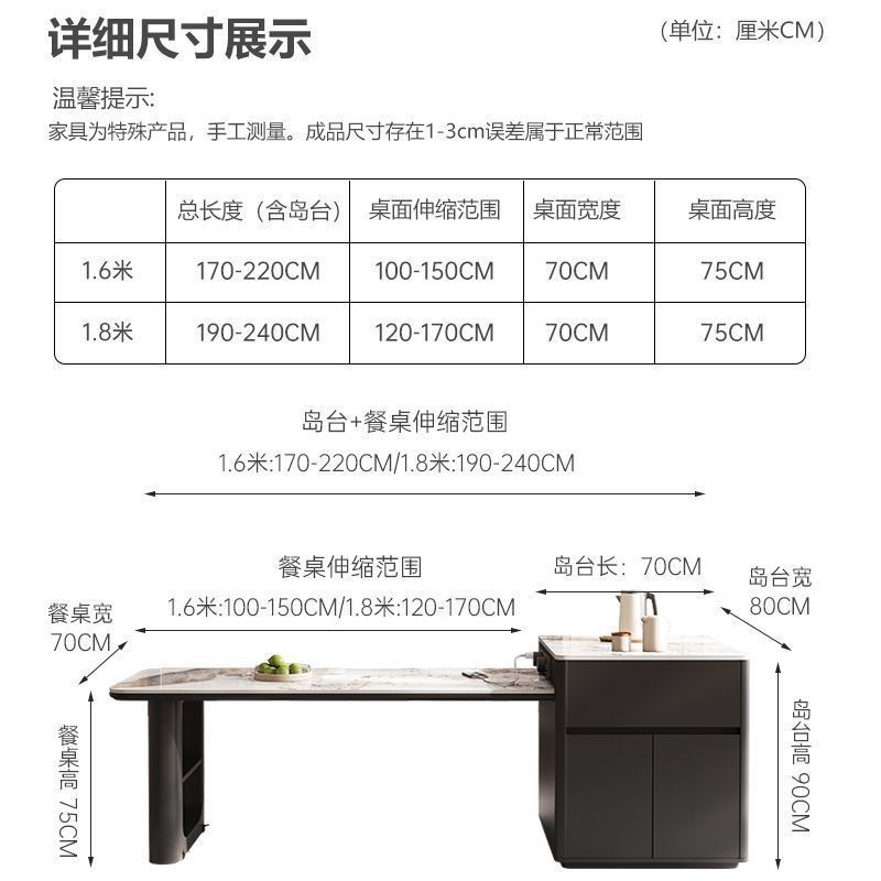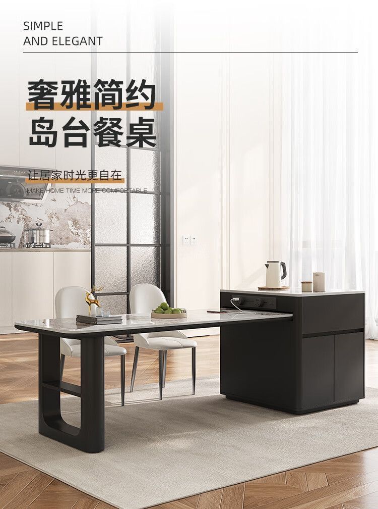 Сланцевый островной чайный стол и обеденный стол, многофункциональный, выдвижной, высококачественный стол из массива дерева и стулья, легкий люксовый обеденный стол