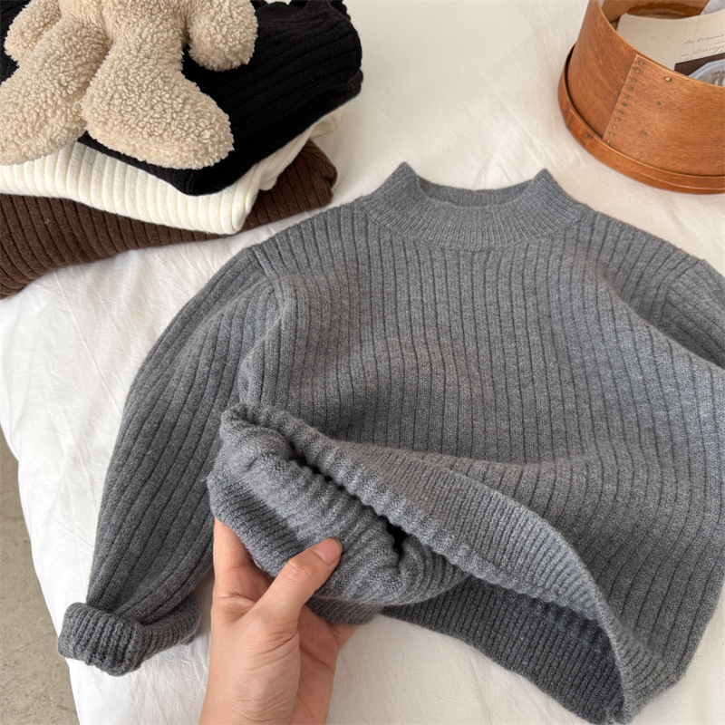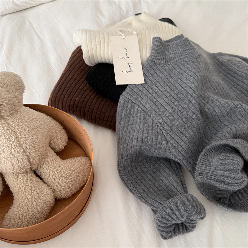 Детский свитер 2025, зимний новый свитер с высоким воротником для мальчиков и девочек, однотонный базовый свитер для малышей