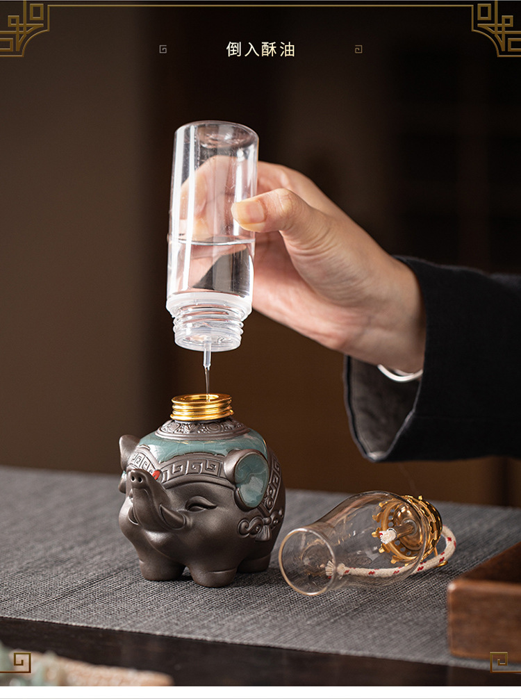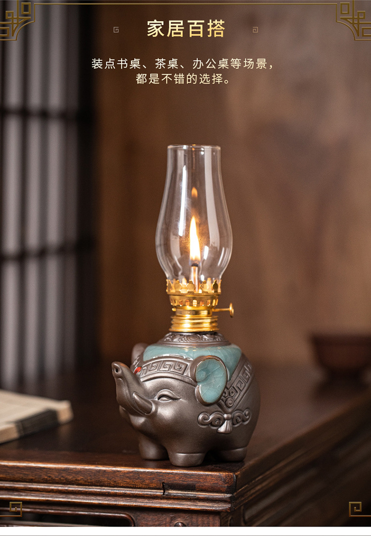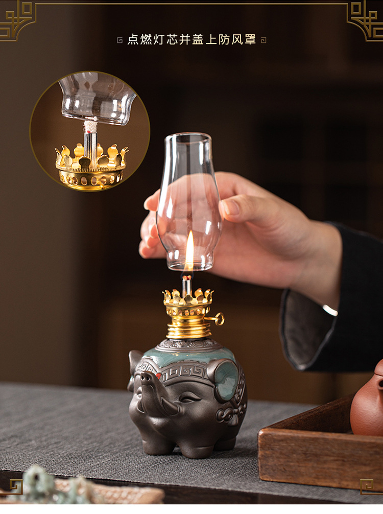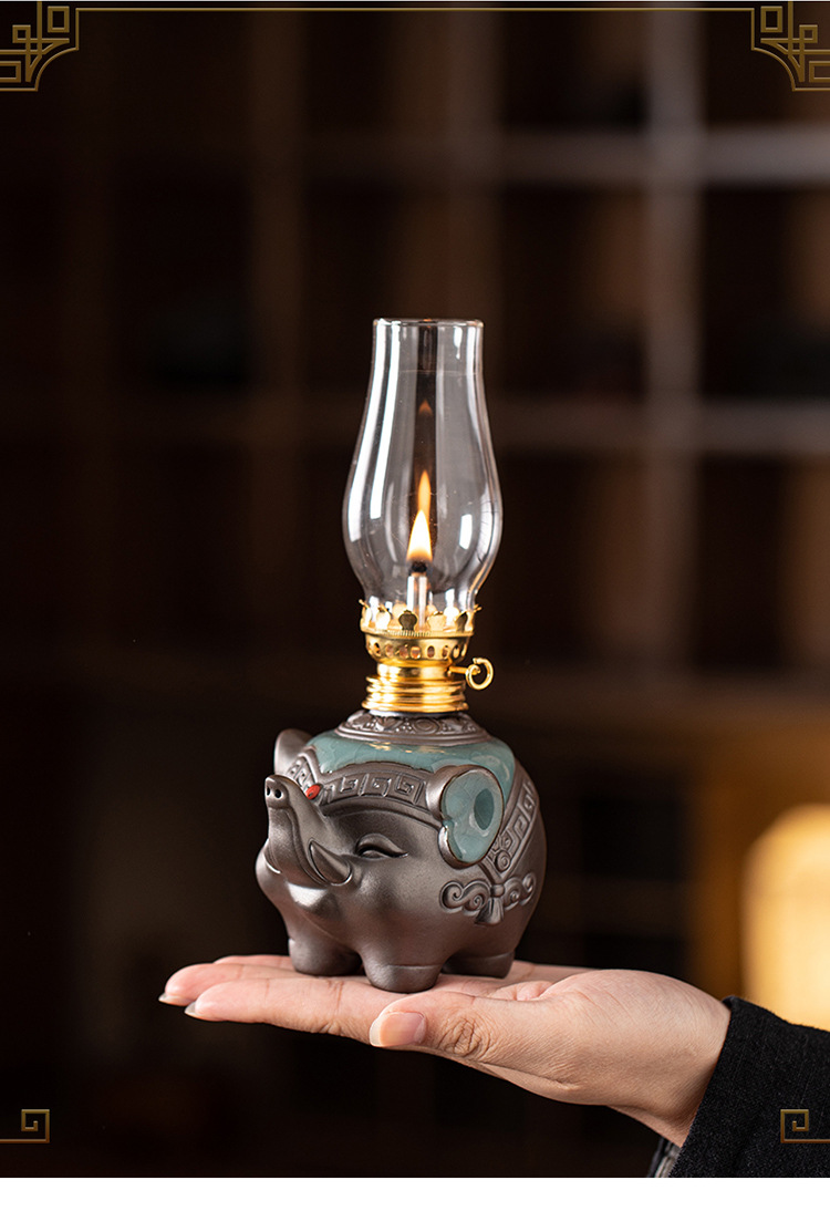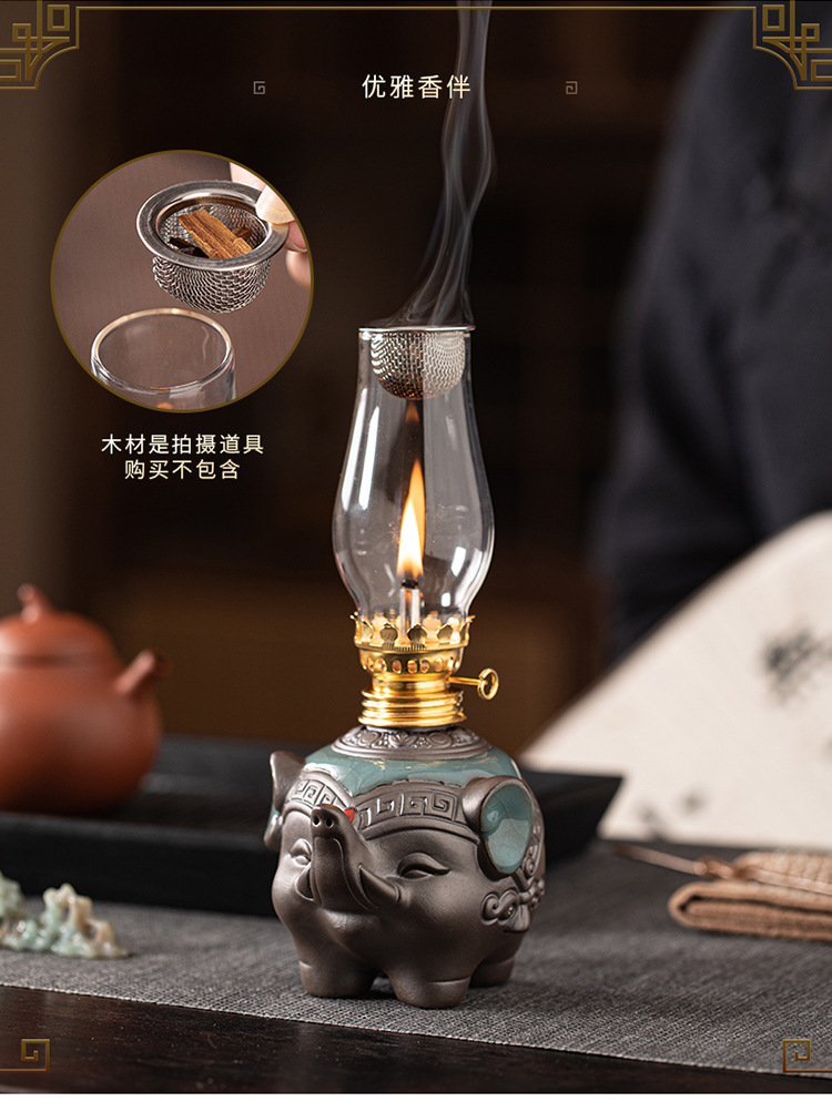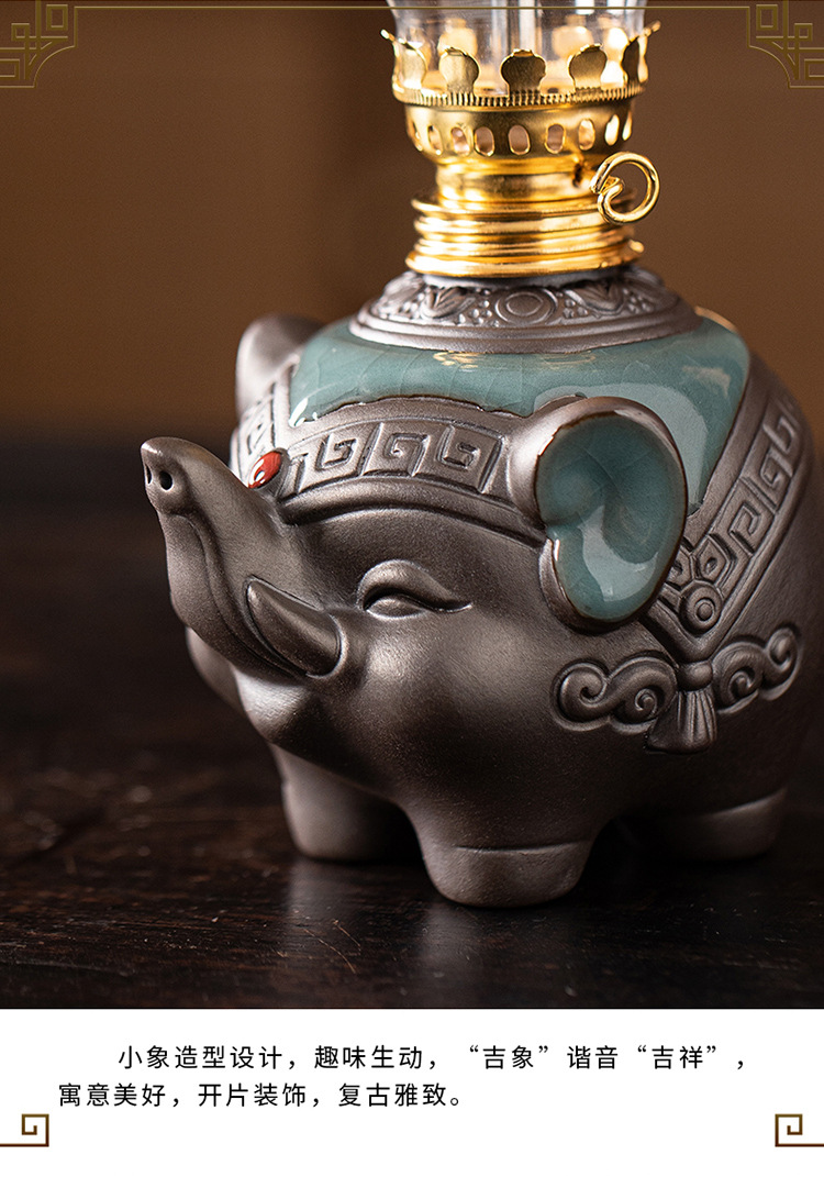 Пара слонов из керамики, лампа для масла, вечная лампа, атмосферная лампа для чайной комнаты, ароматизатор для масла