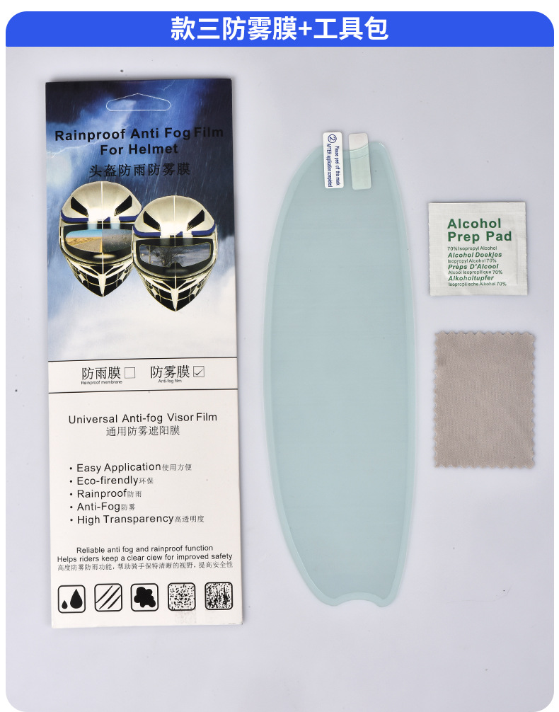 📦 | Enlarged and thickened style 2: 1 piece of rainproof film + 1 piece of anti-fog film [1 piece each inside and outside] | ¥6.12 / ≈ 74 ₽ | 2000 | 6140120075007 | |