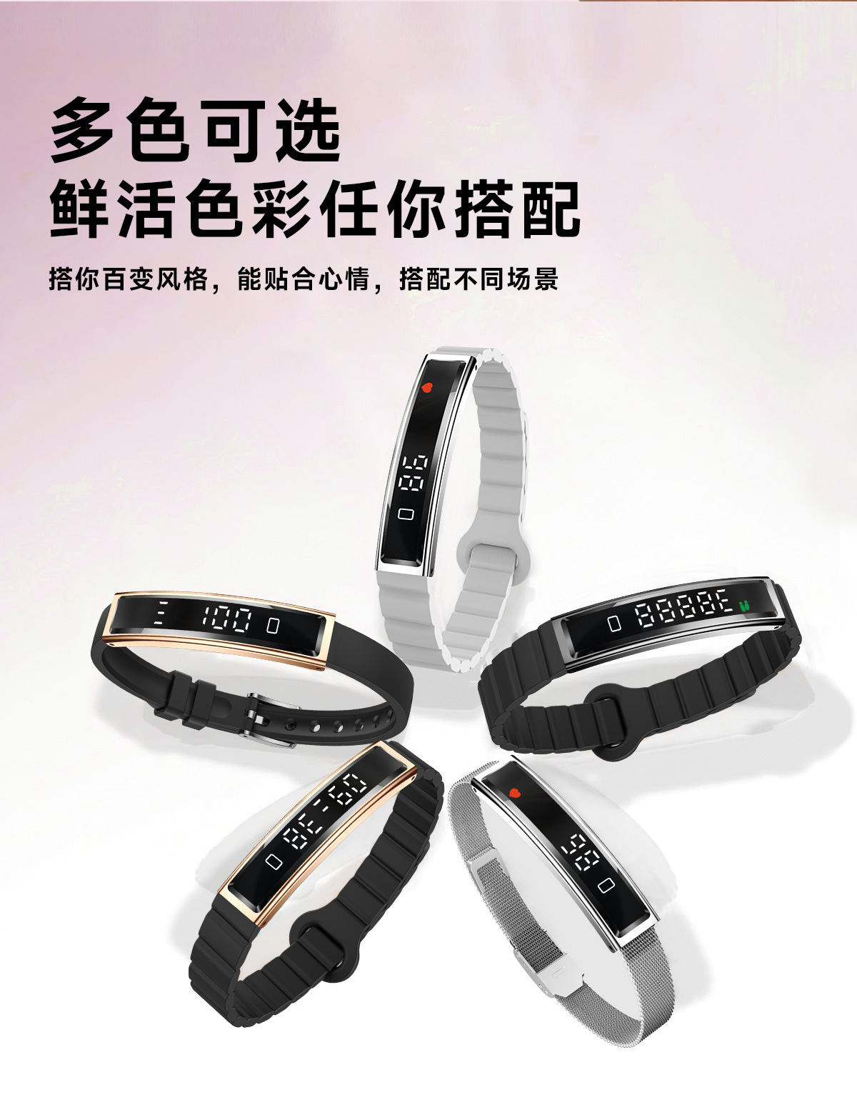 📦 | Rose gold + steel band + silicone band | 2шт: ¥85.00, 100шт: ¥82.00, 1000шт: ¥80.00 | 9512 | 6133976607152 | |