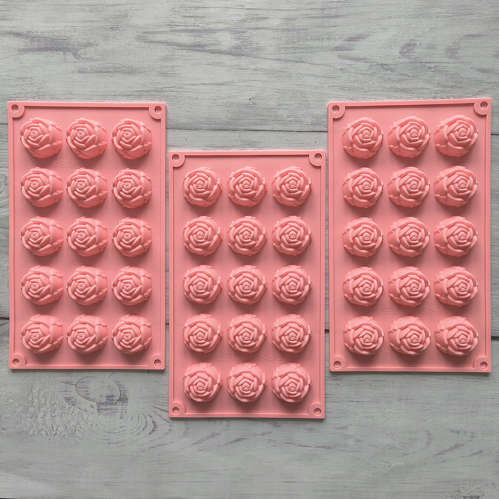 Силиконовые формы в виде мини-роз 15 штук для конфет, пудинга, мыла и тортов