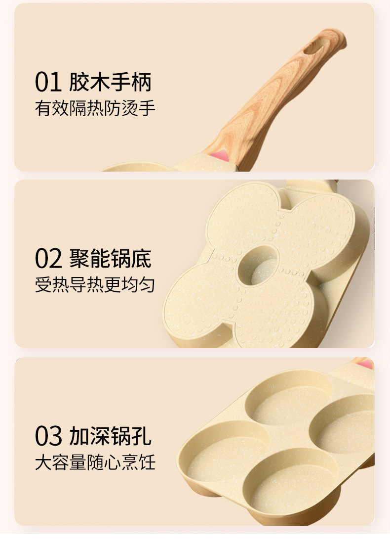 Кросс-бодер сковорода для омлетов с четырьмя отверстиями, антипригарная, для завтрака, для омлетов и пельменей, маленькая сковорода
