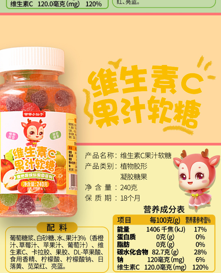 Жевательные конфеты Dudu Little Fairy в большом банке, витаминные жевательные конфеты, 240г/бутылка