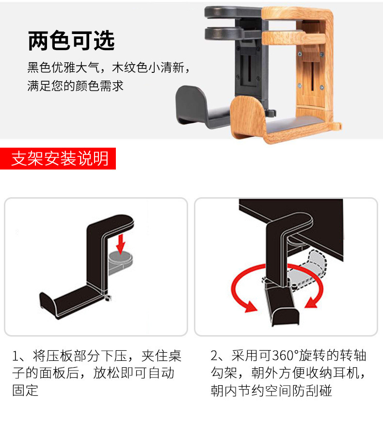 Частная модель без сверления, 360-градусный поворотный держатель для наушников, вращающаяся стойка без клея
