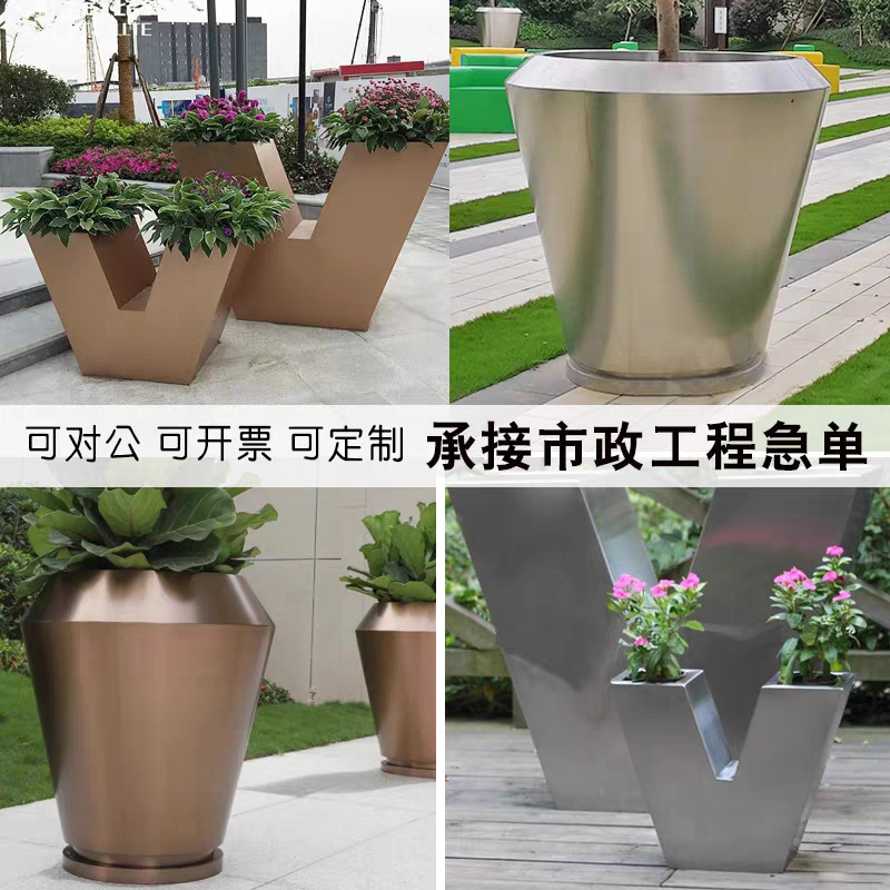 Скандинавский креативный V-образный напольный большой цветочный горшок, наружный цветочный горшок из нержавеющей стали, украшения для сада, ландшафтные украшения торгового центра