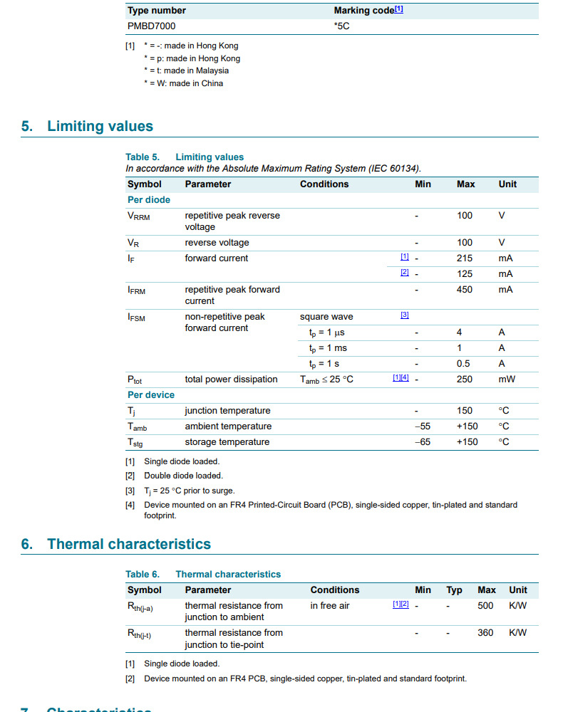 Оригинальный подлинный Pmbd7000,215 Sot-23-3 Двойной высокоскоростной переключающий диод