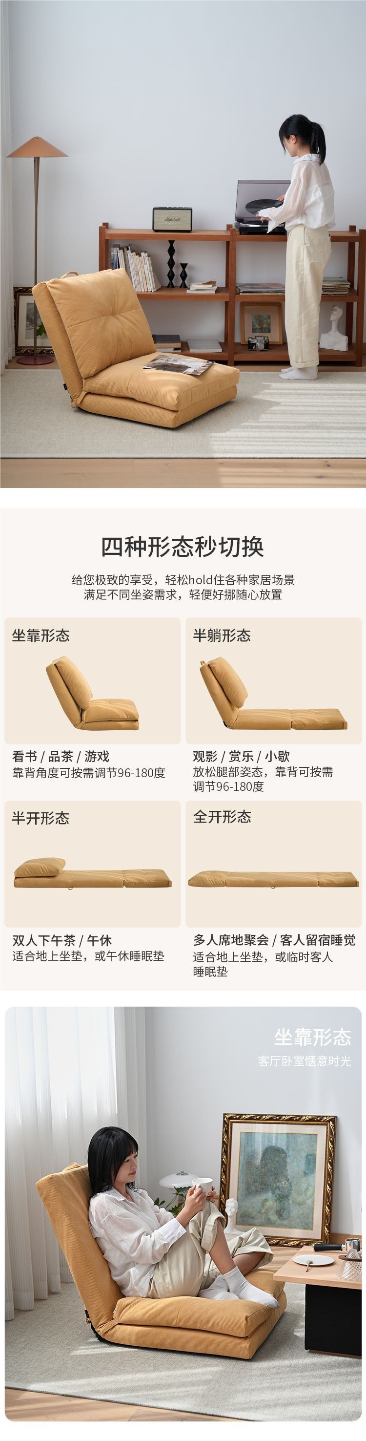 Ленивая софа, раскладывающаяся и спальная, для спальни, татами, оконный подоконник, складное кресло, одноразовое, съемное и washable, балконная спинка