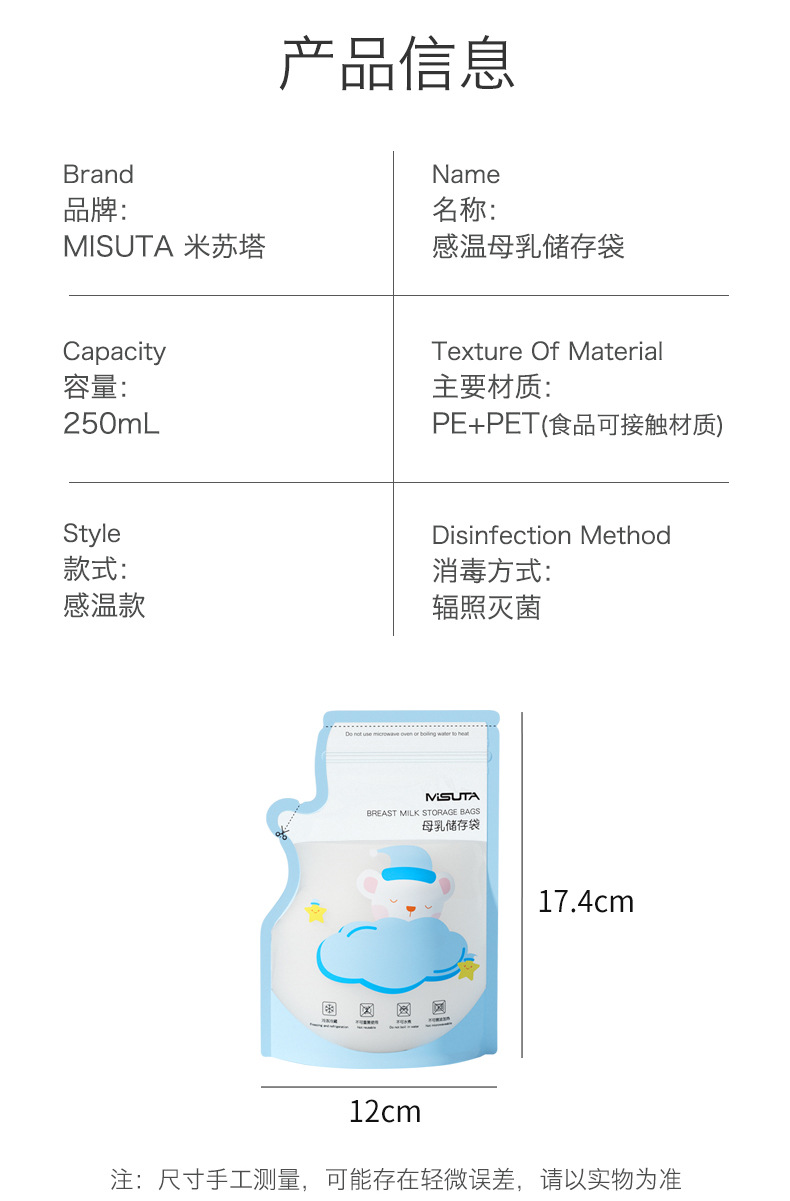 Пакет для хранения молока Misuta, портативный пакет, чувствительный к температуре, замораживание, пакет для грудного молока 250 мл