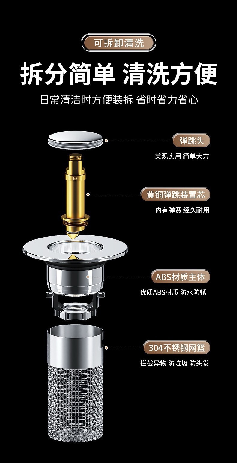Кросс-бордерный слив с выдвижным сердечником, универсальный фильтр из нержавеющей стали, антизапах для раковины с нажимным механизмом