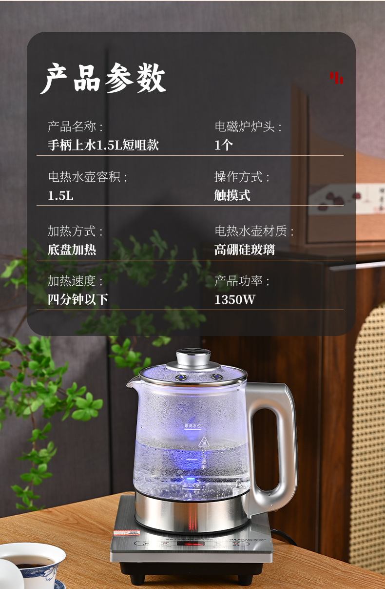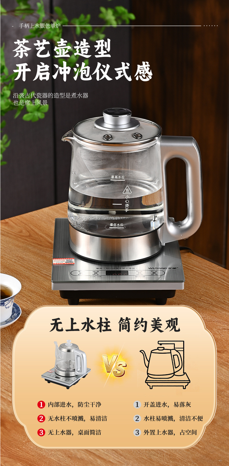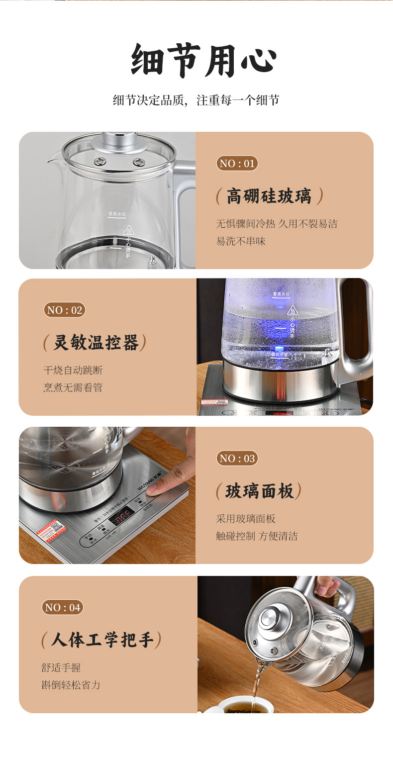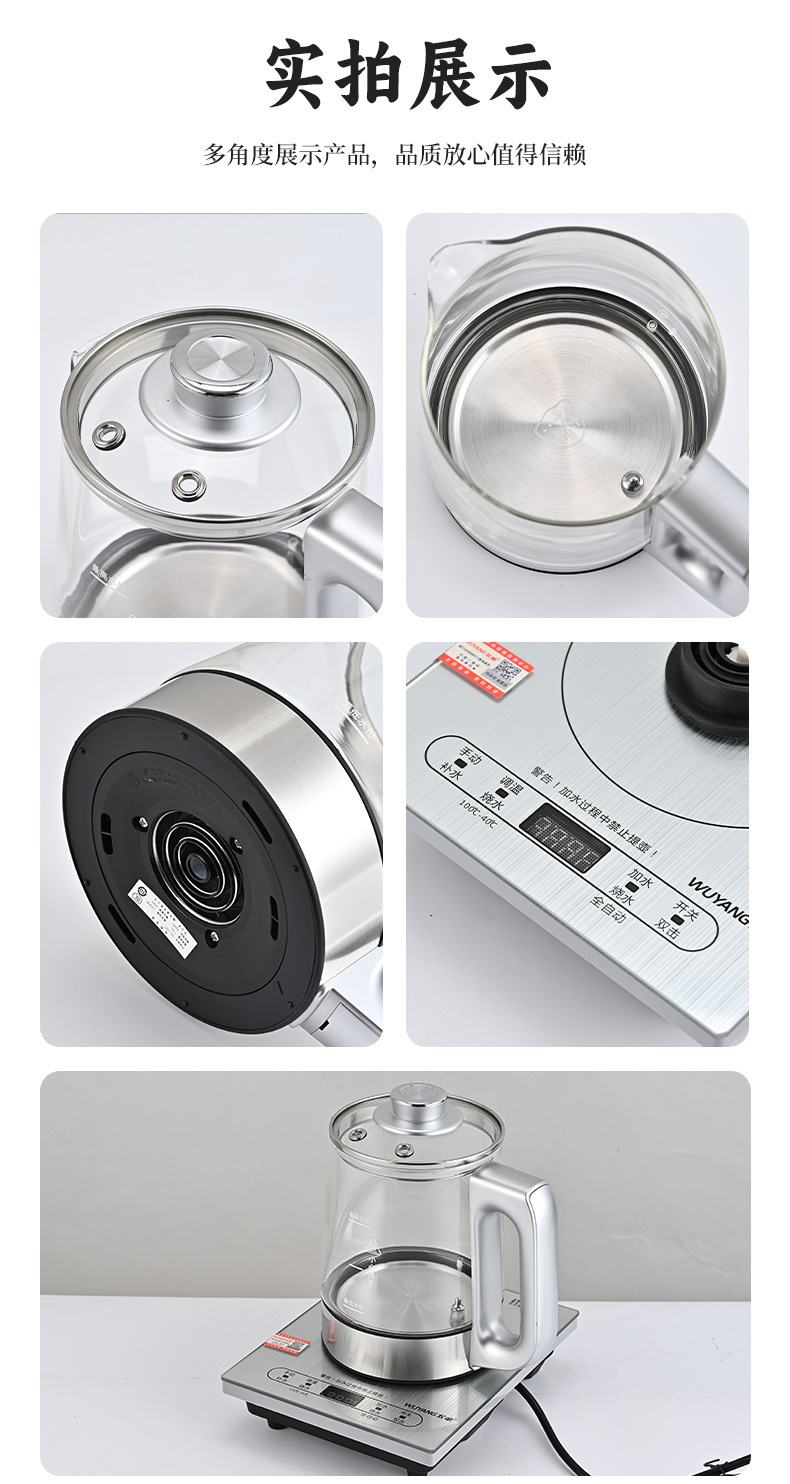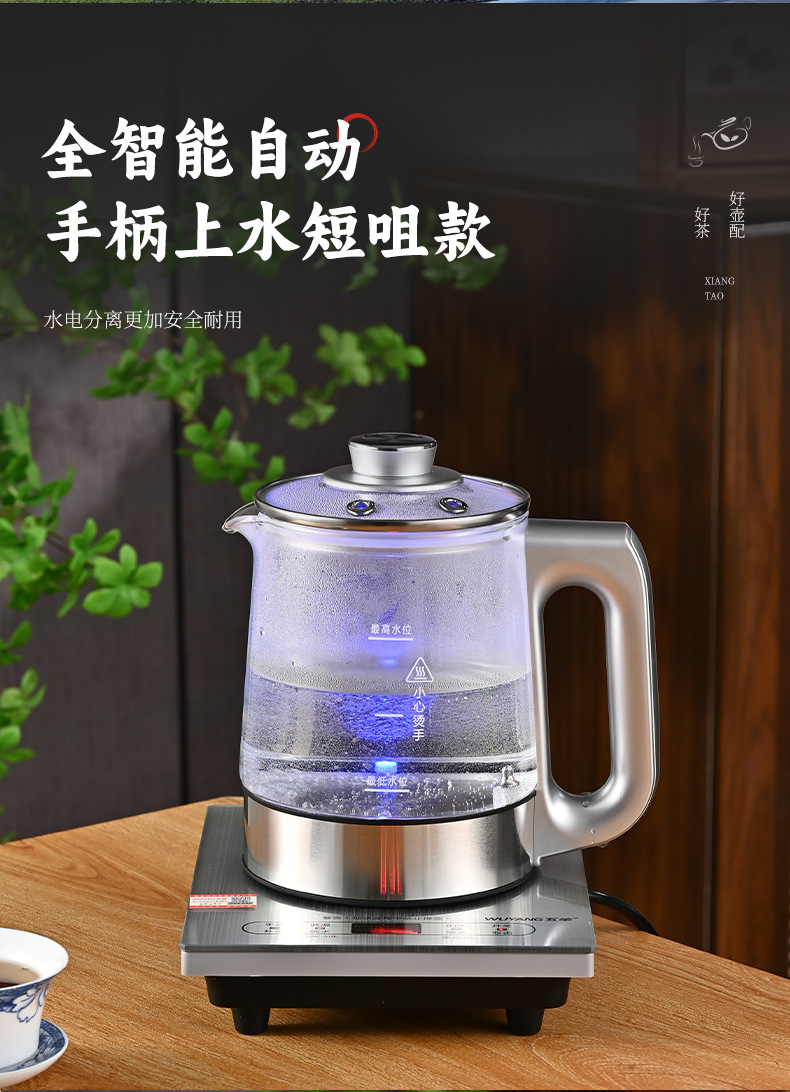 Электрический чайник с умной ручкой Wuyang 1.5L, многофункциональный, автоматическое отключение, бытовой стеклянный чайник