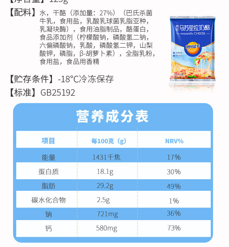 ![]() | Shredded cheese 125g〖most people’s choice〗 | ¥10.58 / ≈ 127 ₽ | 44682 | 5973731325549 | |