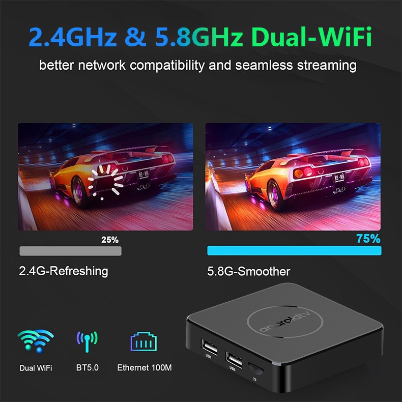 Экспортный Android TV-бокс 4K с двойным диапазоном Bluetooth Wifi Android 15.0
