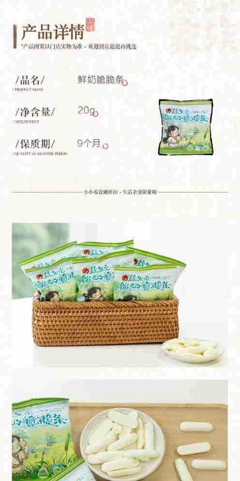 Чайный цвет свежего молока хрустящие полоски 20г пребиотики 0 сахара пакет офисные закуски детская еда