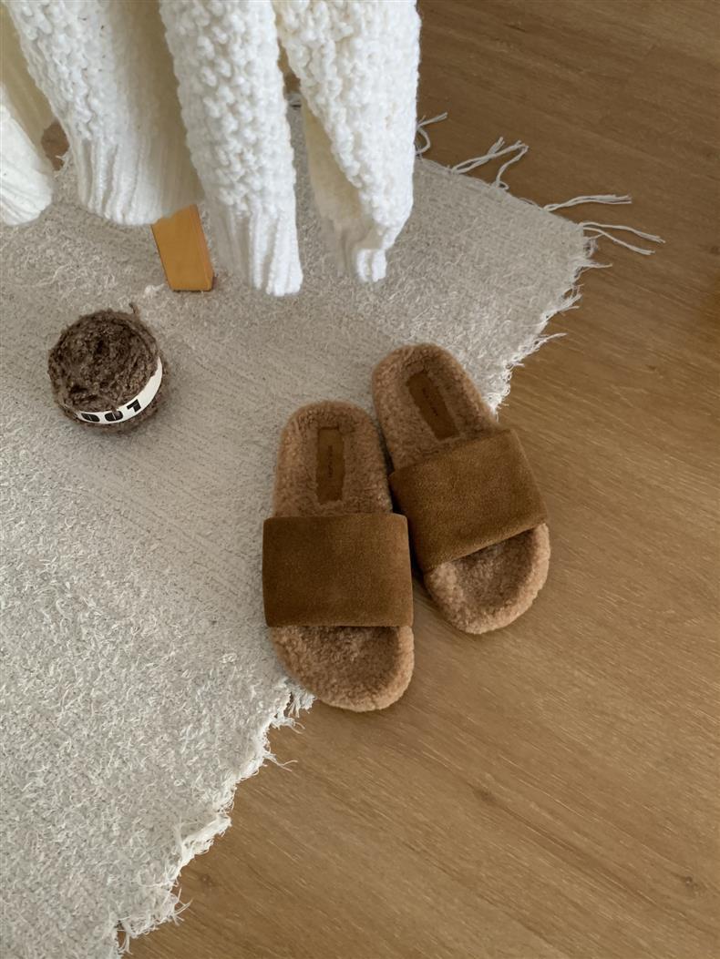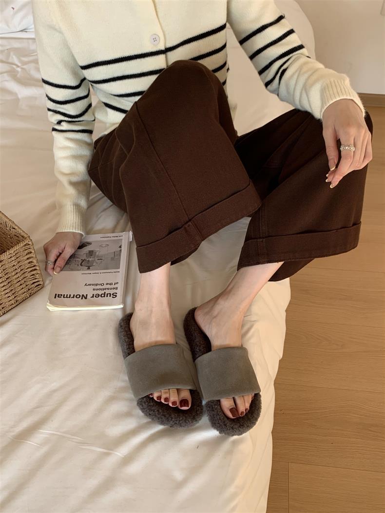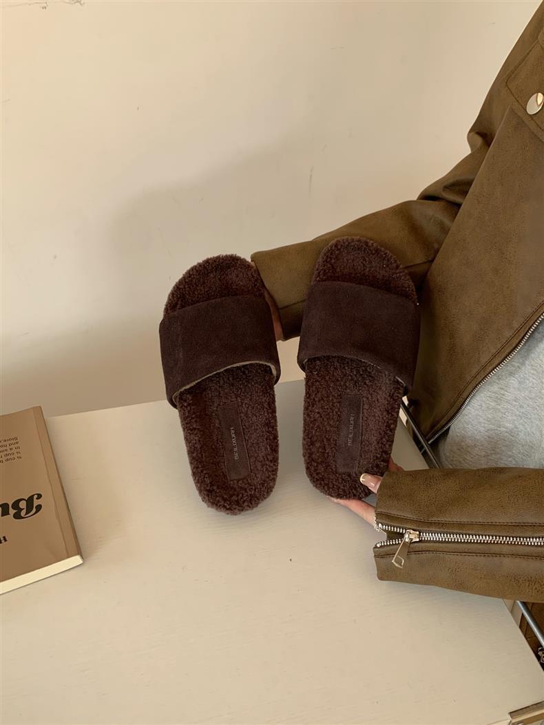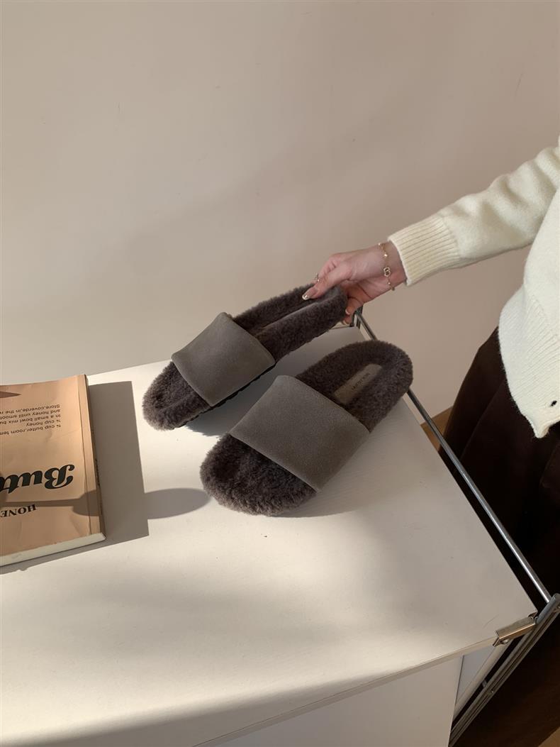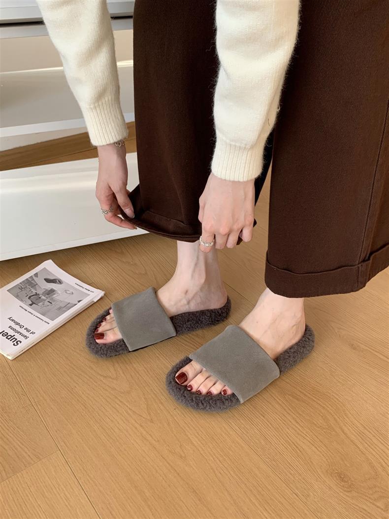 Новые снаружи замшевые слипоны с мехом для женщин, натуральная кожа, универсальные толстые удобные сандалии с открытым носом