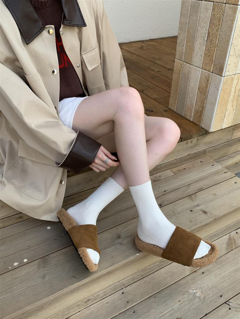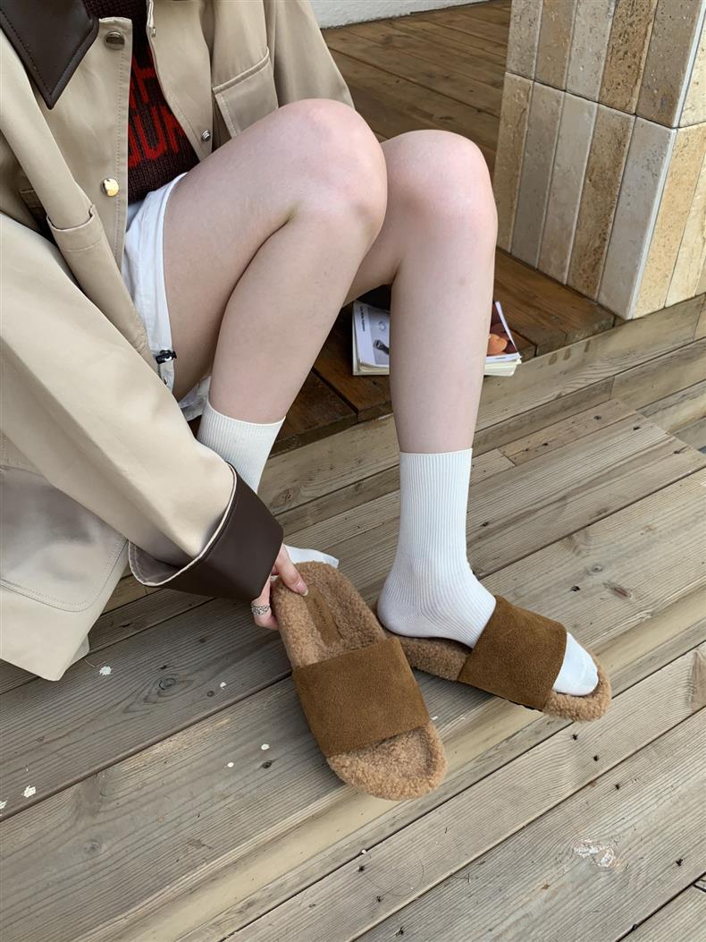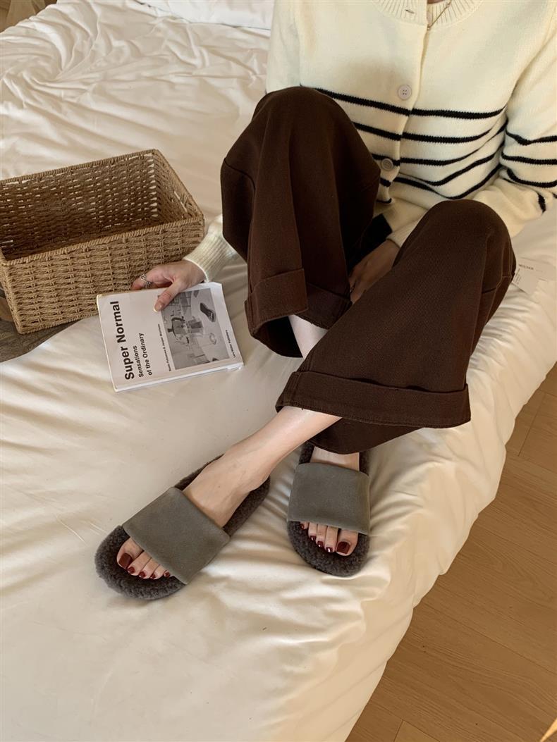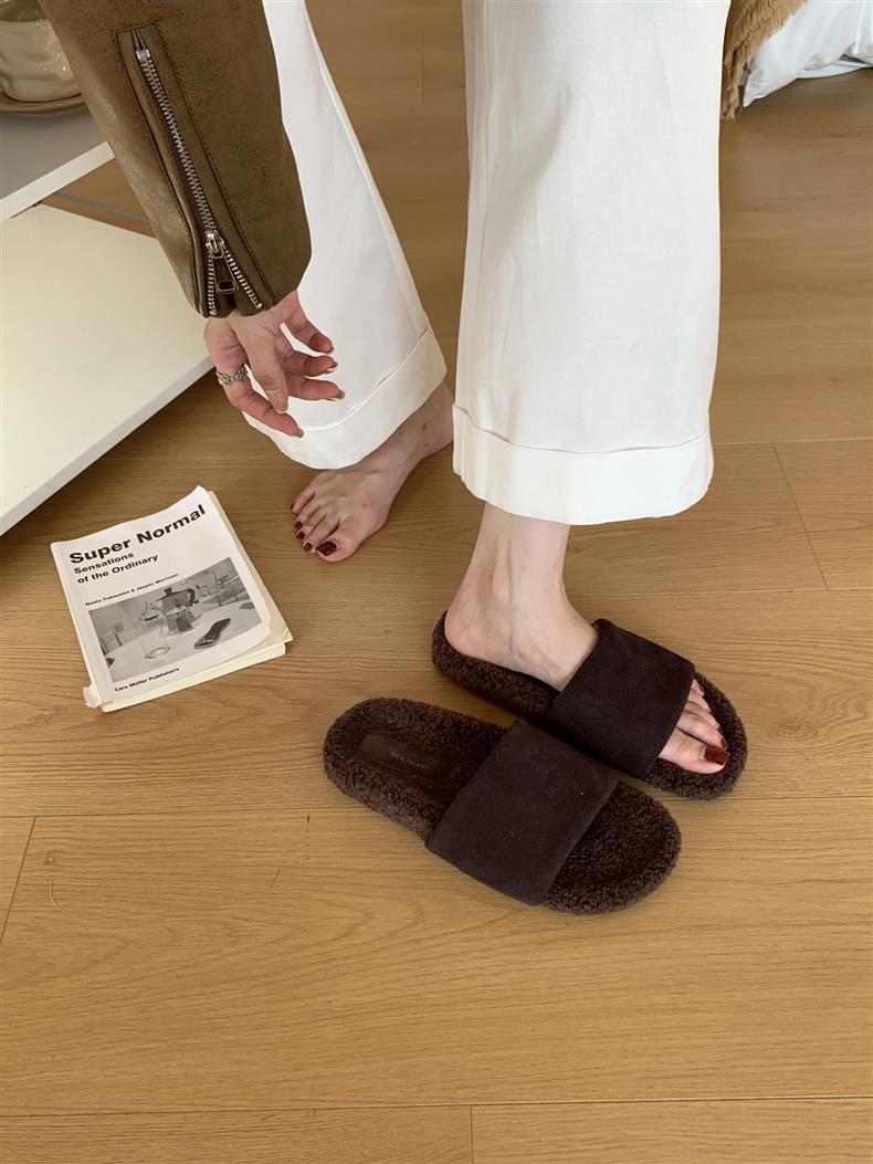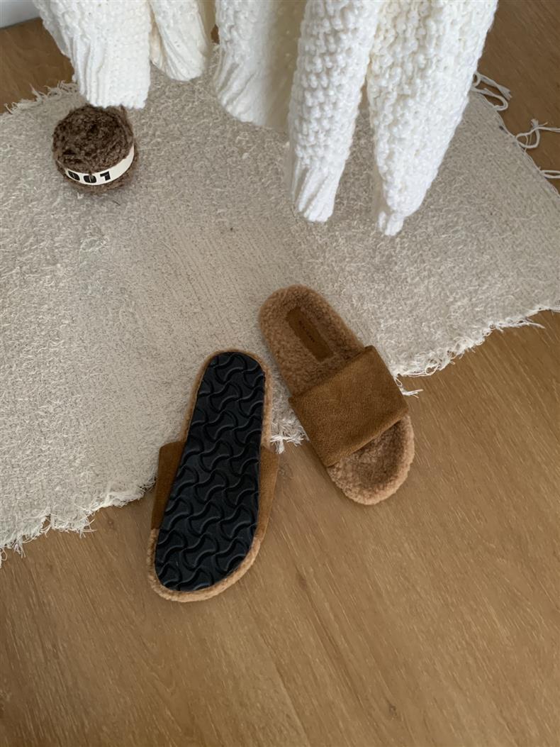Новые снаружи замшевые слипоны с мехом для женщин, натуральная кожа, универсальные толстые удобные сандалии с открытым носом