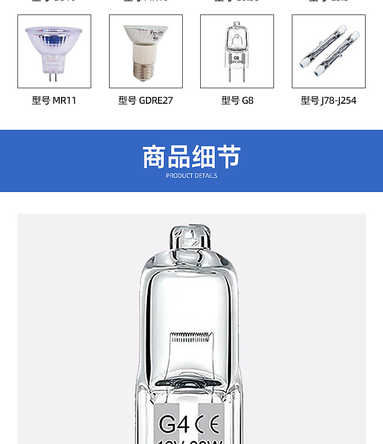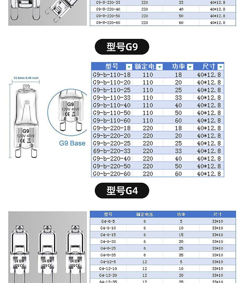 Номер заказа G4 g5.3 g6.35 g8 g9