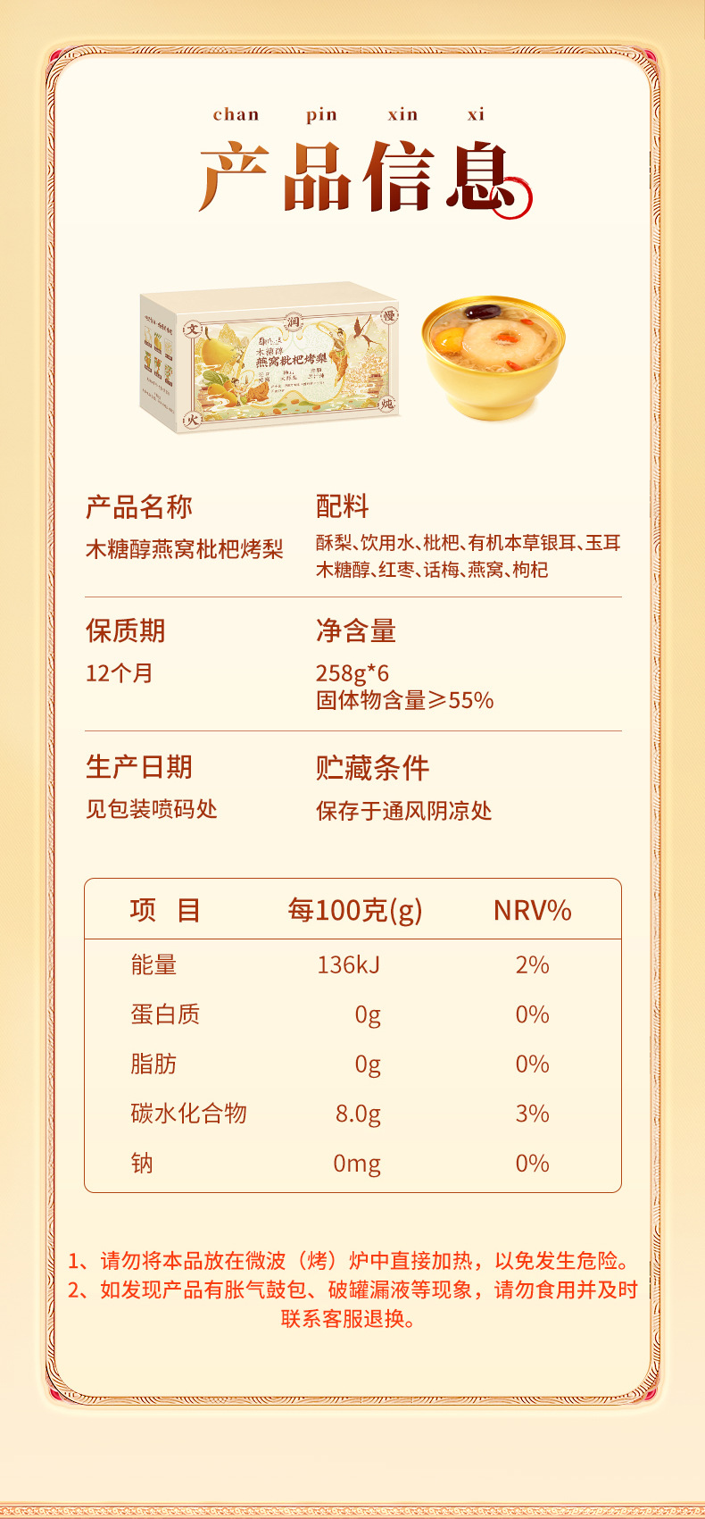 📦 | Bird's nest loquat roasted pear 258g*6 bowls/box | ¥79.9 / ≈ 964 ₽ | 19382 | 5972634816979 |