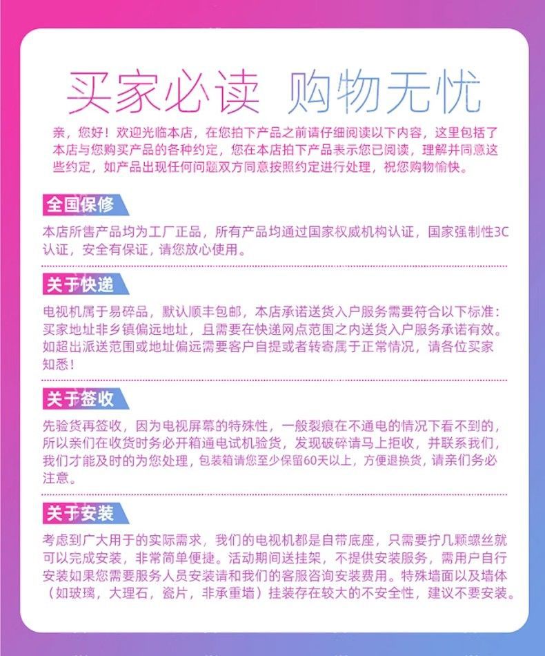 ![]() | Ultra-clear explosion-proof (network wifi version) anti-blue light eye protection | 32inch | ¥755.8 / ≈ 9 131 ₽ | 1000 | 5974141560345 |