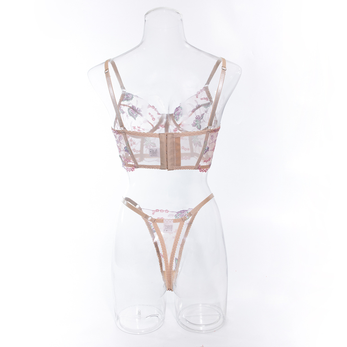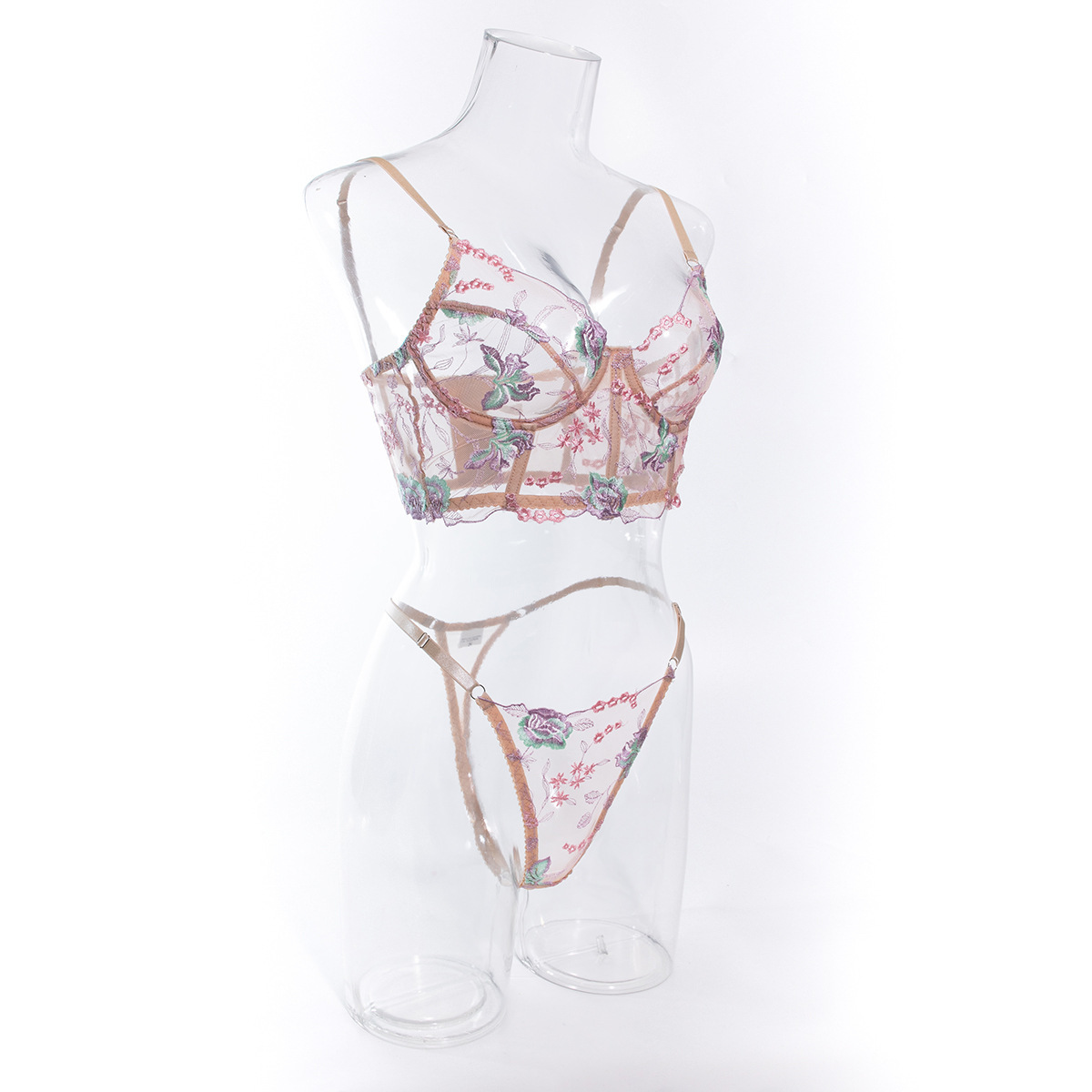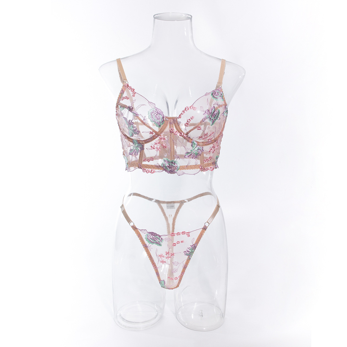 Европейский и американский кросс-браслет летнего сексуального женского комплекта, ультратонкая сетка, косточки, пуш-ап, вышитое эротическое белье