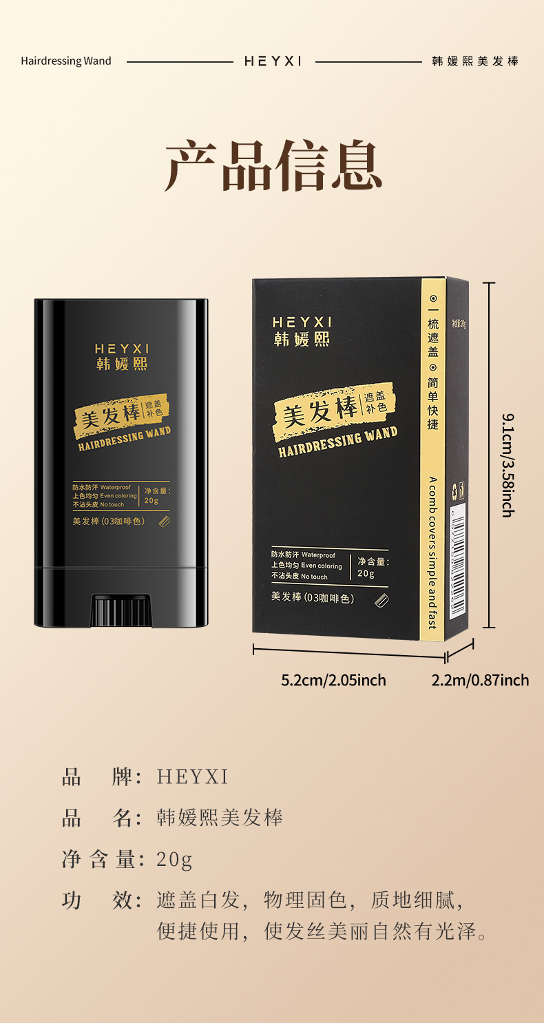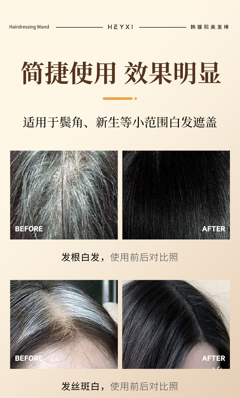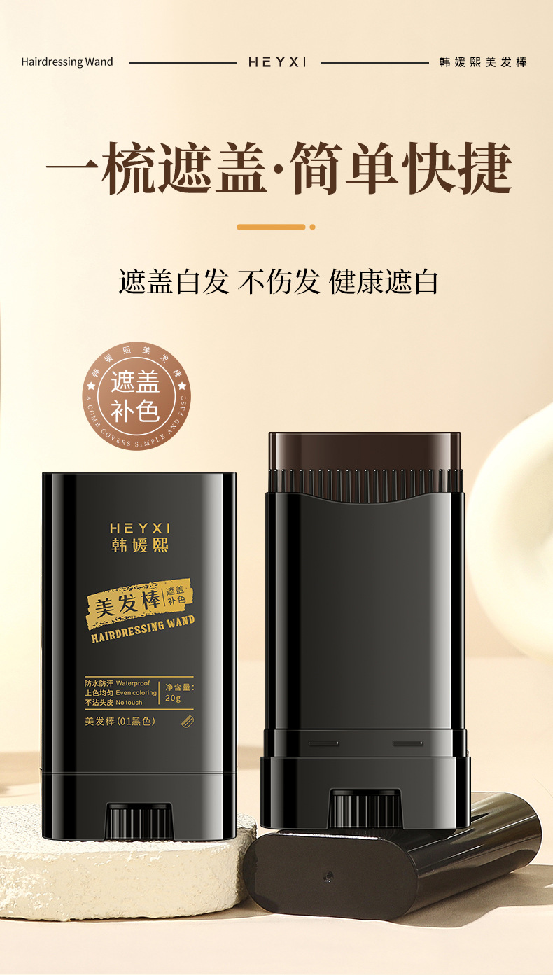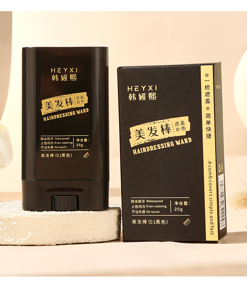 Карандаш для окрашивания волос Heyxi Han Yuanxi, черный, одноразовый, временное покрытие седых волос, расческа для окрашивания