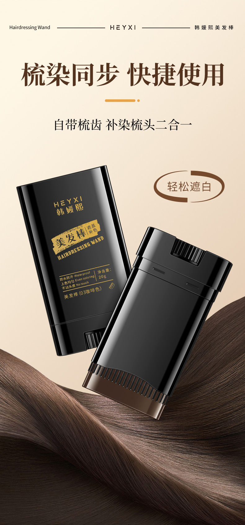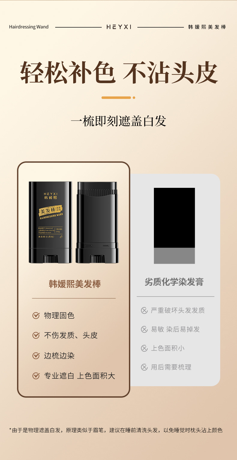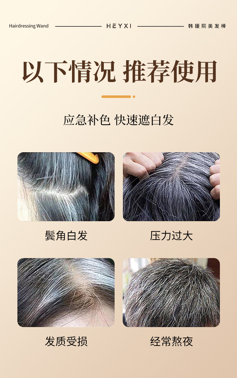 Карандаш для окрашивания волос Heyxi Han Yuanxi, черный, одноразовый, временное покрытие седых волос, расческа для окрашивания