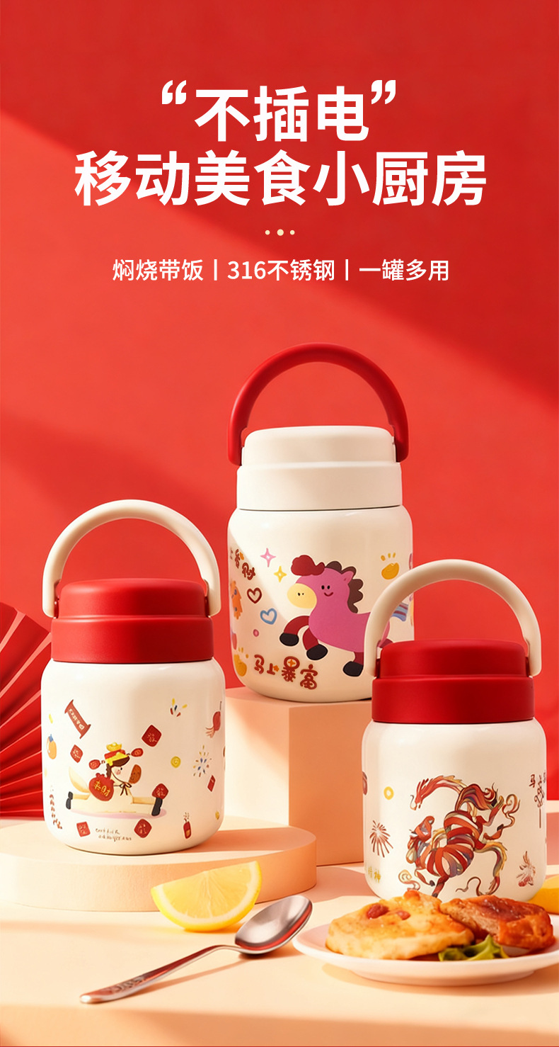Кружка для тушения, год Лошади, новая, из нержавеющей стали 316, большая емкость, портативная, insulated, кастрюля для каши