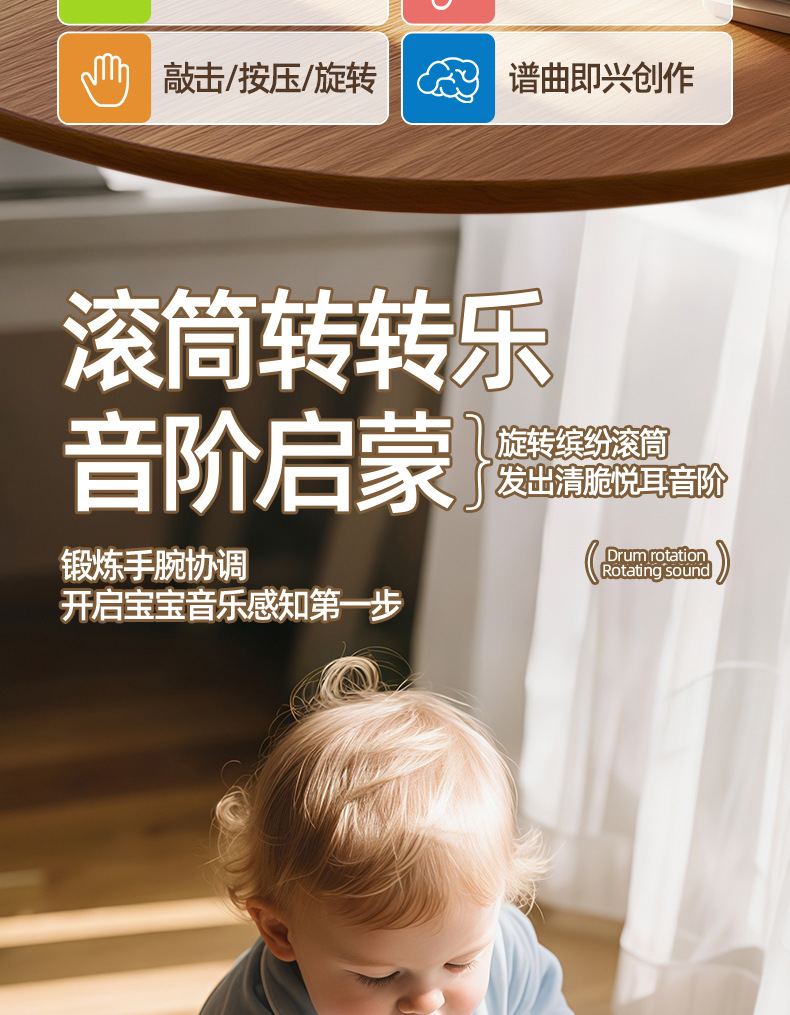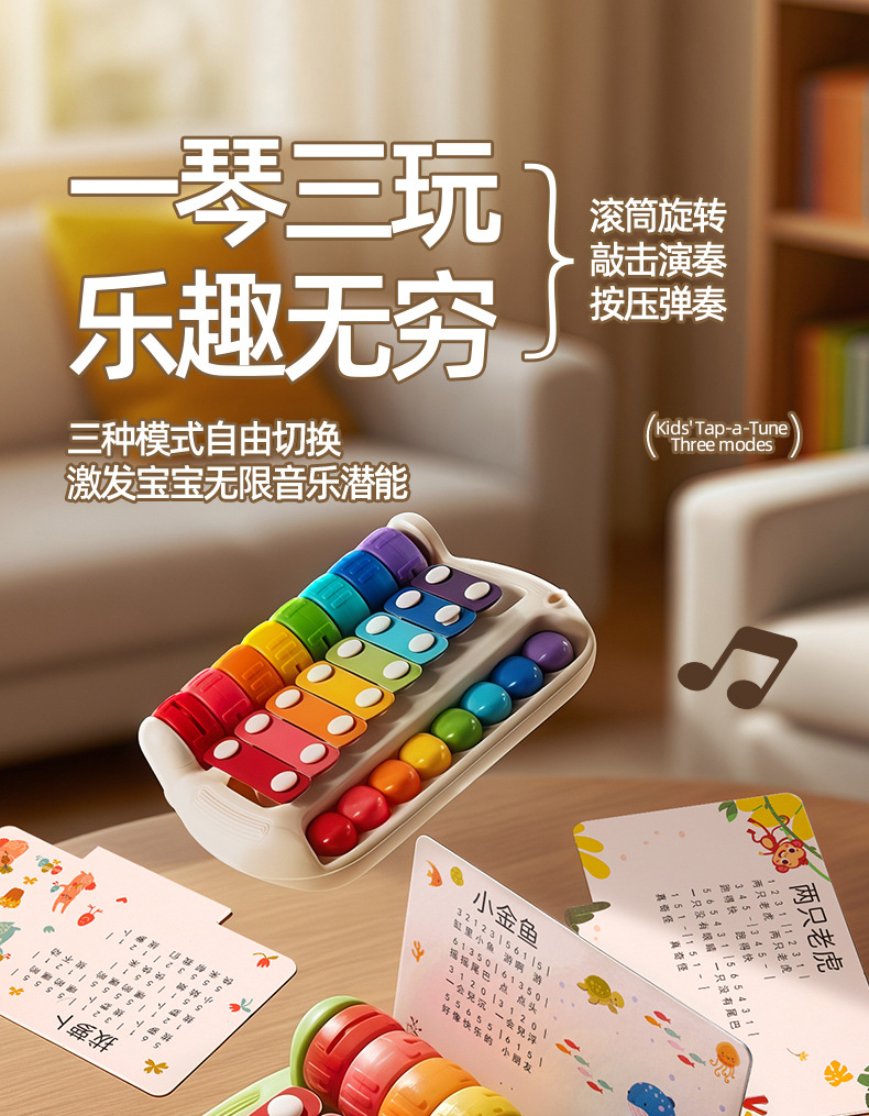 Игрушка-пианино с восьминотным ударом для детей от 0 до 6 месяцев и старше, раннее образование, обучающая, успокаивающая, вращающаяся и ударная музыка