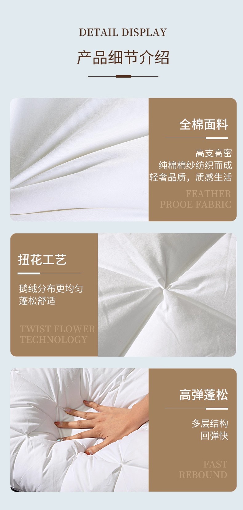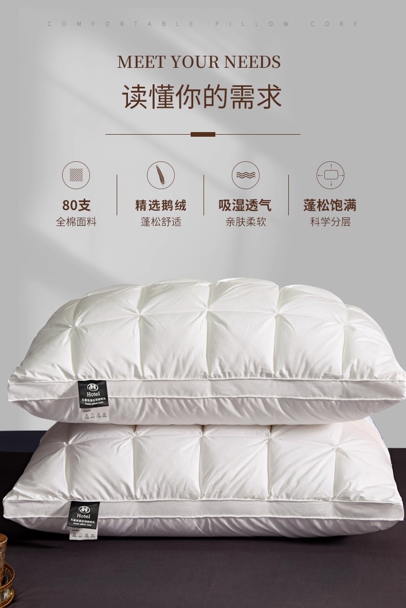 Роскошная подушка Hilton Hotel из 95% белого гусиного пуха, пара подушек для студентов, антибактериальная, для сна и поддержки шейного отдела