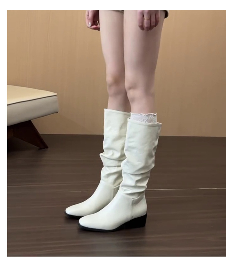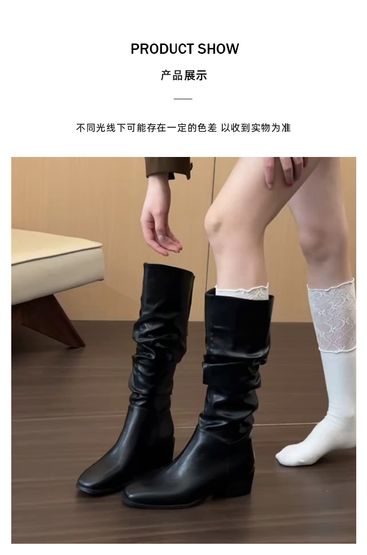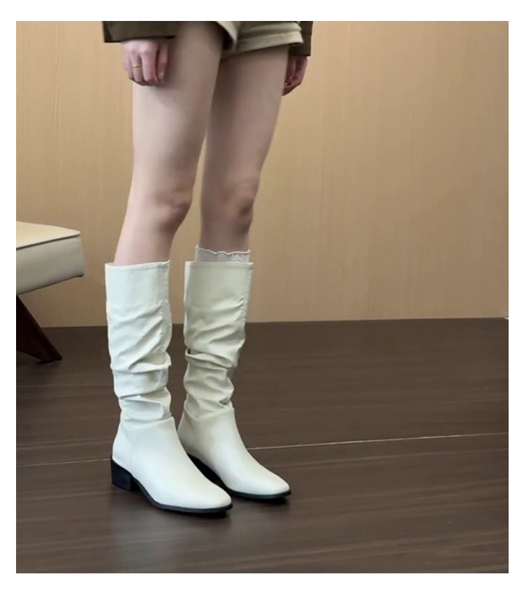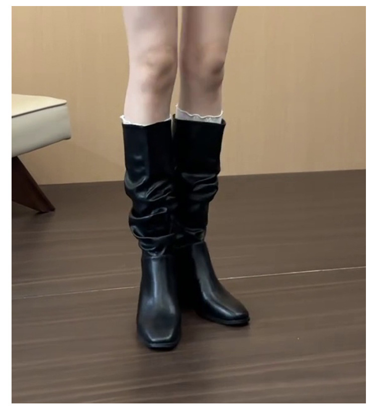 Универсальные ботинки до колена для женщин осенью и зимой, плиссированные ботинки, толстый каблук, квадратный носок, простые элегантные ботинки