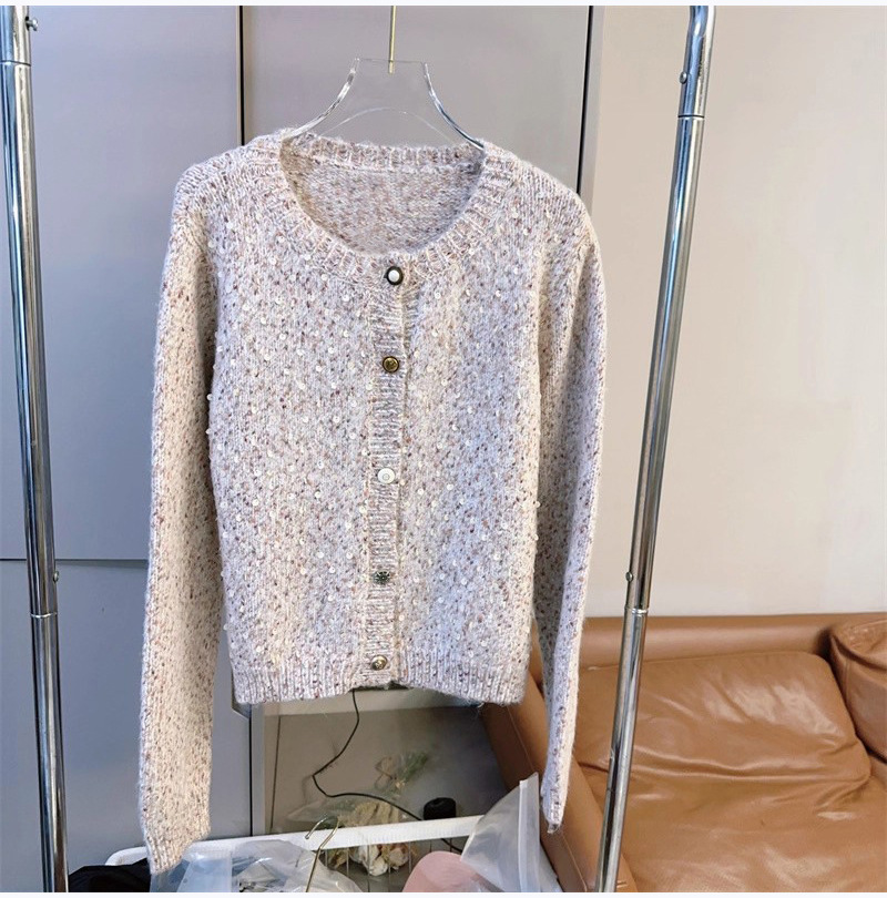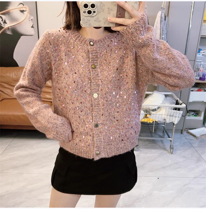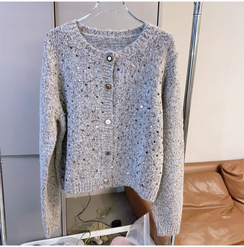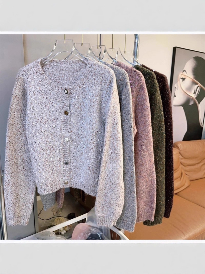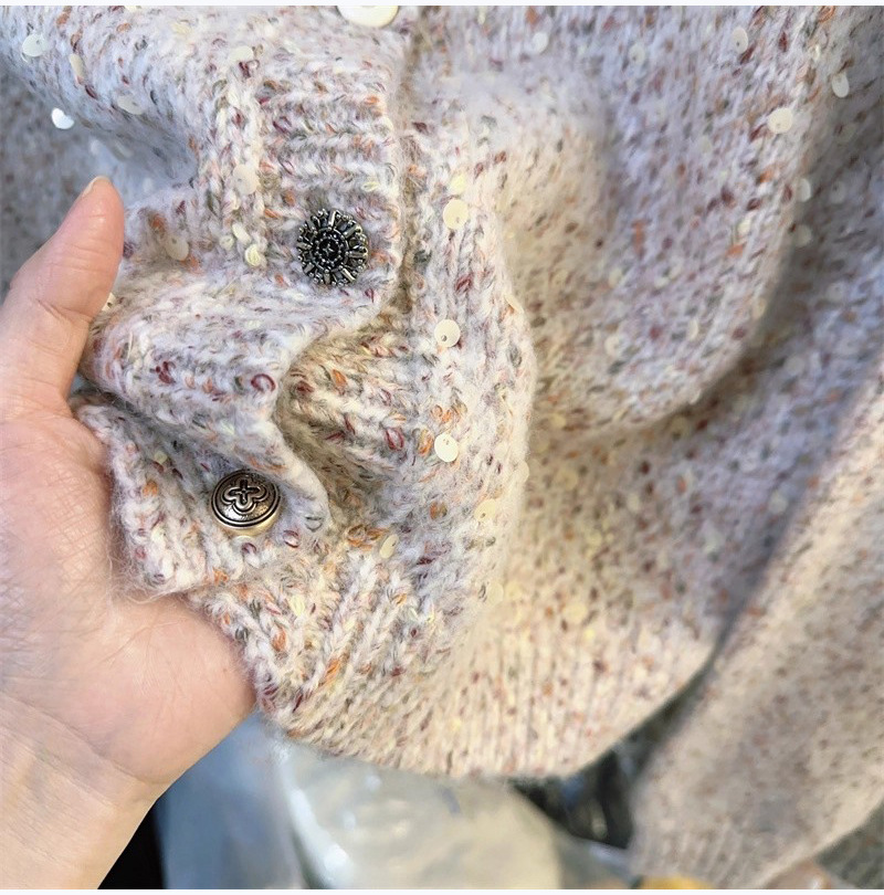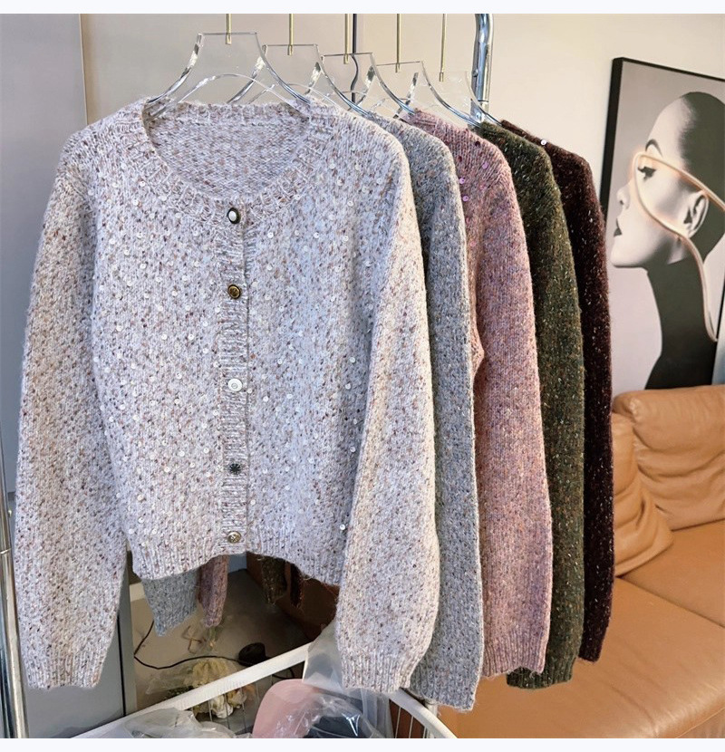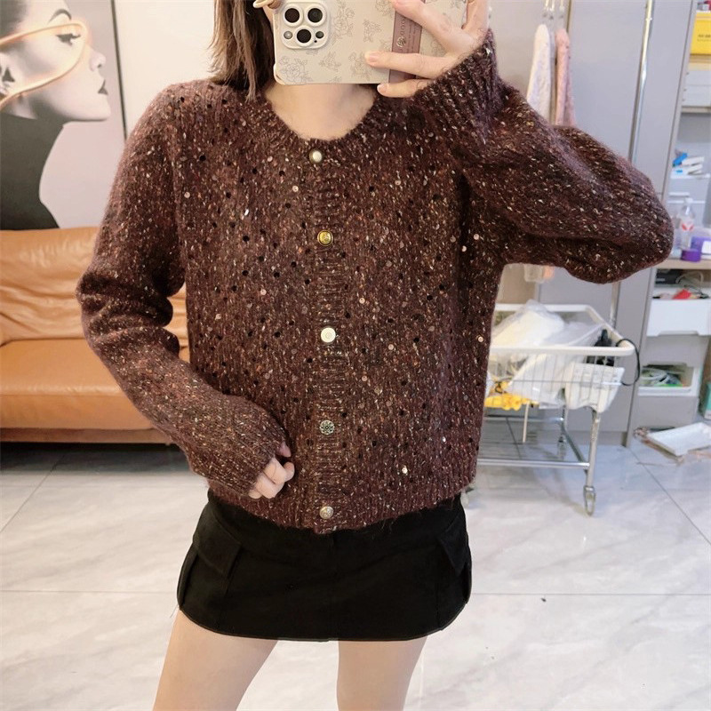 Осень и Зима Новый Корейский Стиль Свободный Узкий Круглый Вырез Блестящий Вязаный Кардиган Женский Свитер Однобортный Модный Пиджак