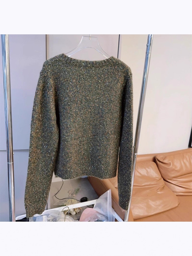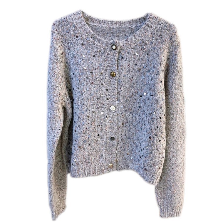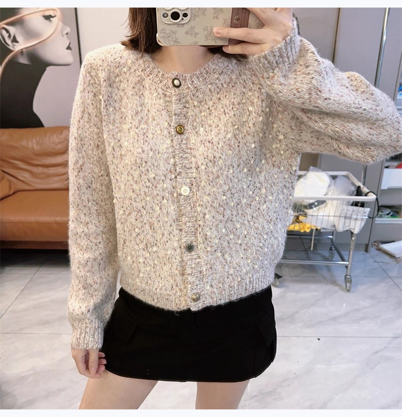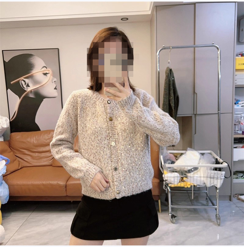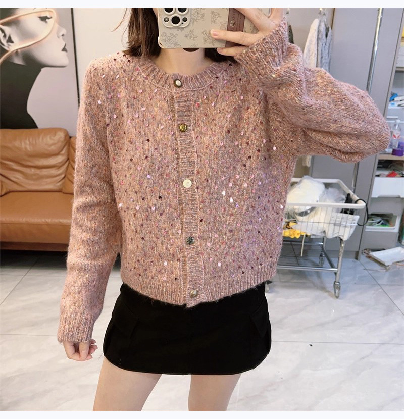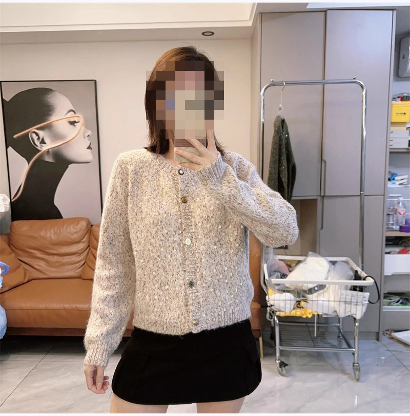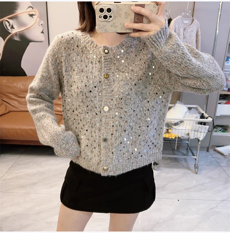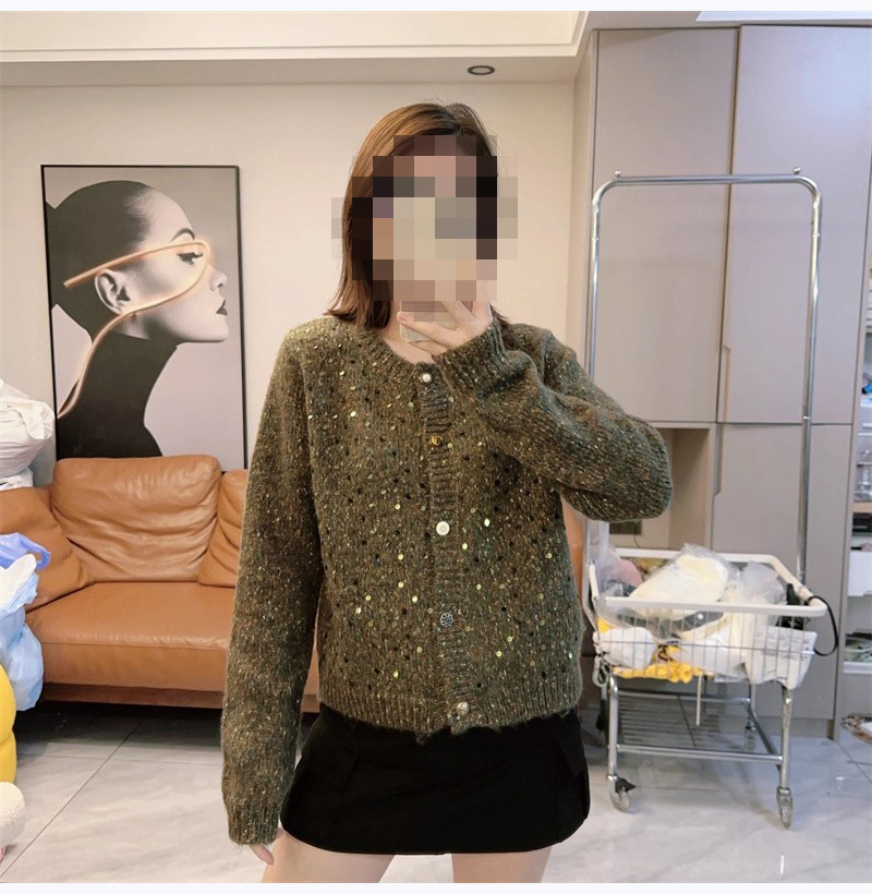 Осень и Зима Новый Корейский Стиль Свободный Узкий Круглый Вырез Блестящий Вязаный Кардиган Женский Свитер Однобортный Модный Пиджак