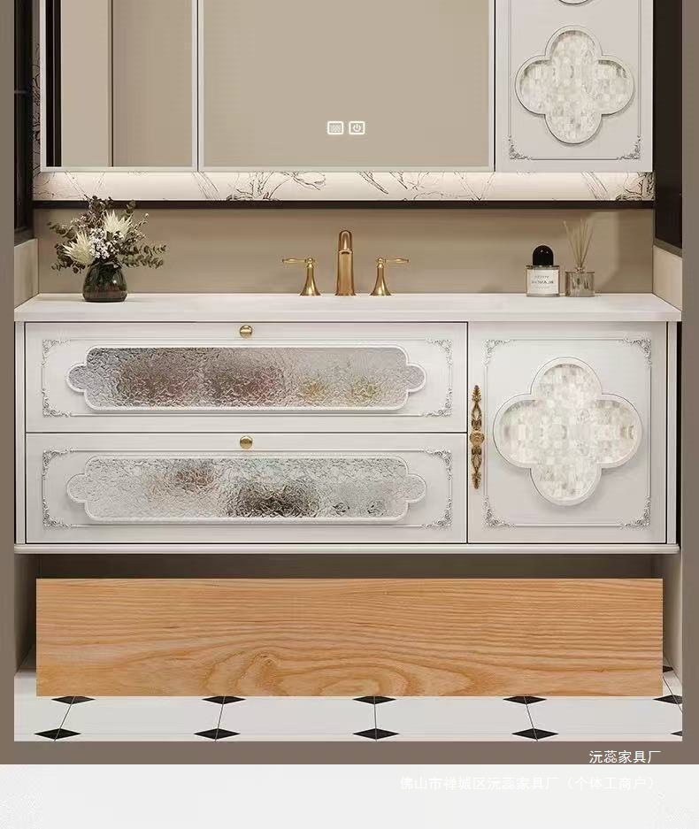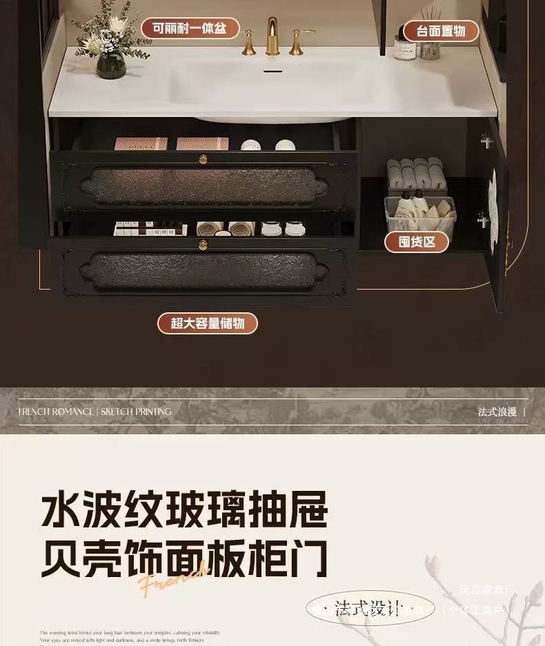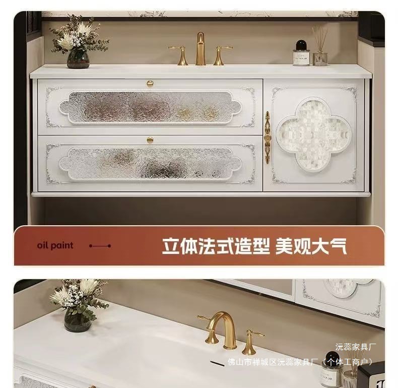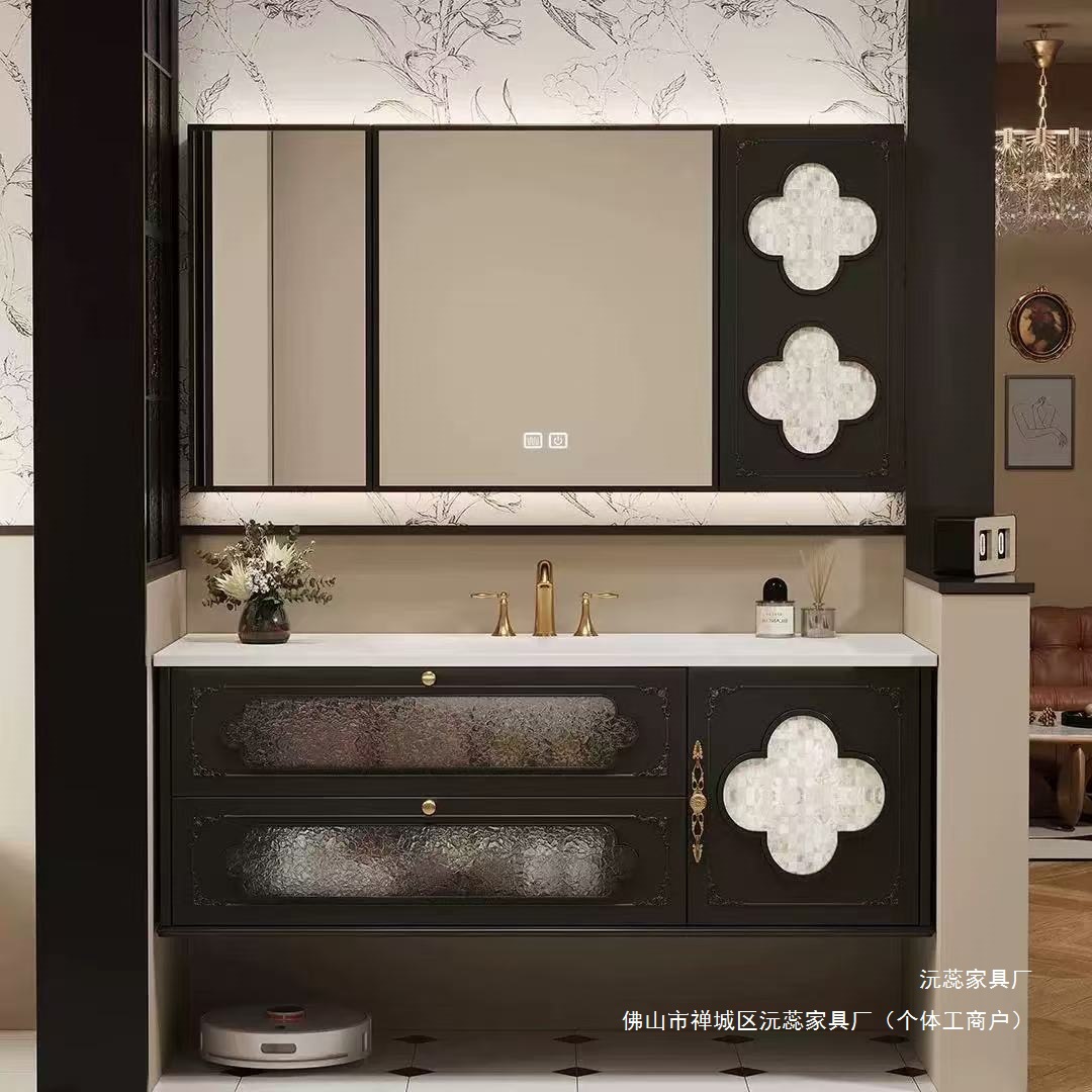 Французский стиль, новый винтажный шкаф для ванной из резинового дерева с интегрированной керамической раковиной