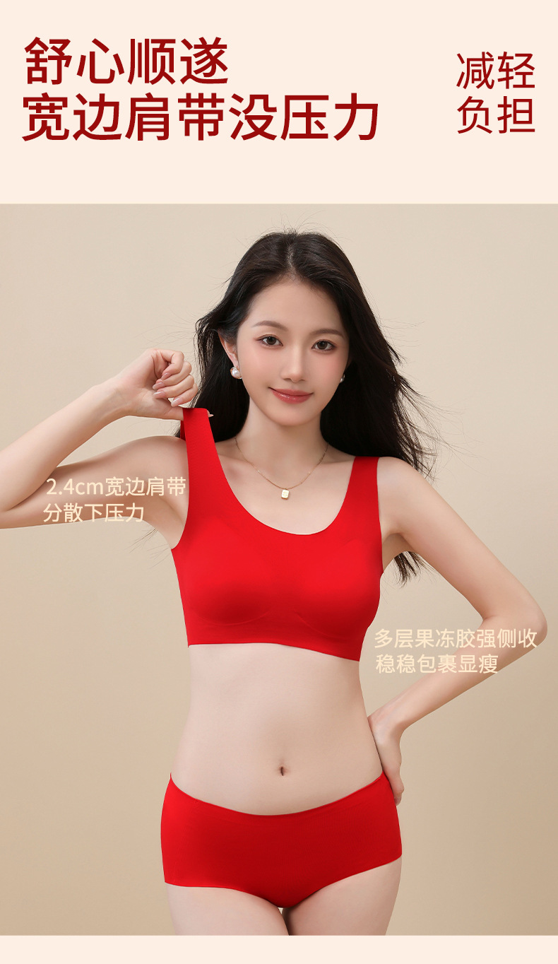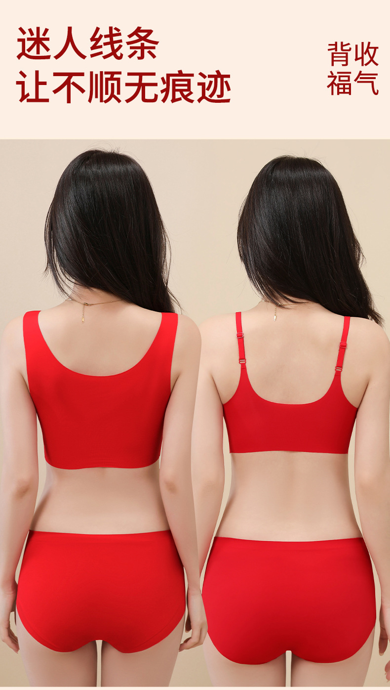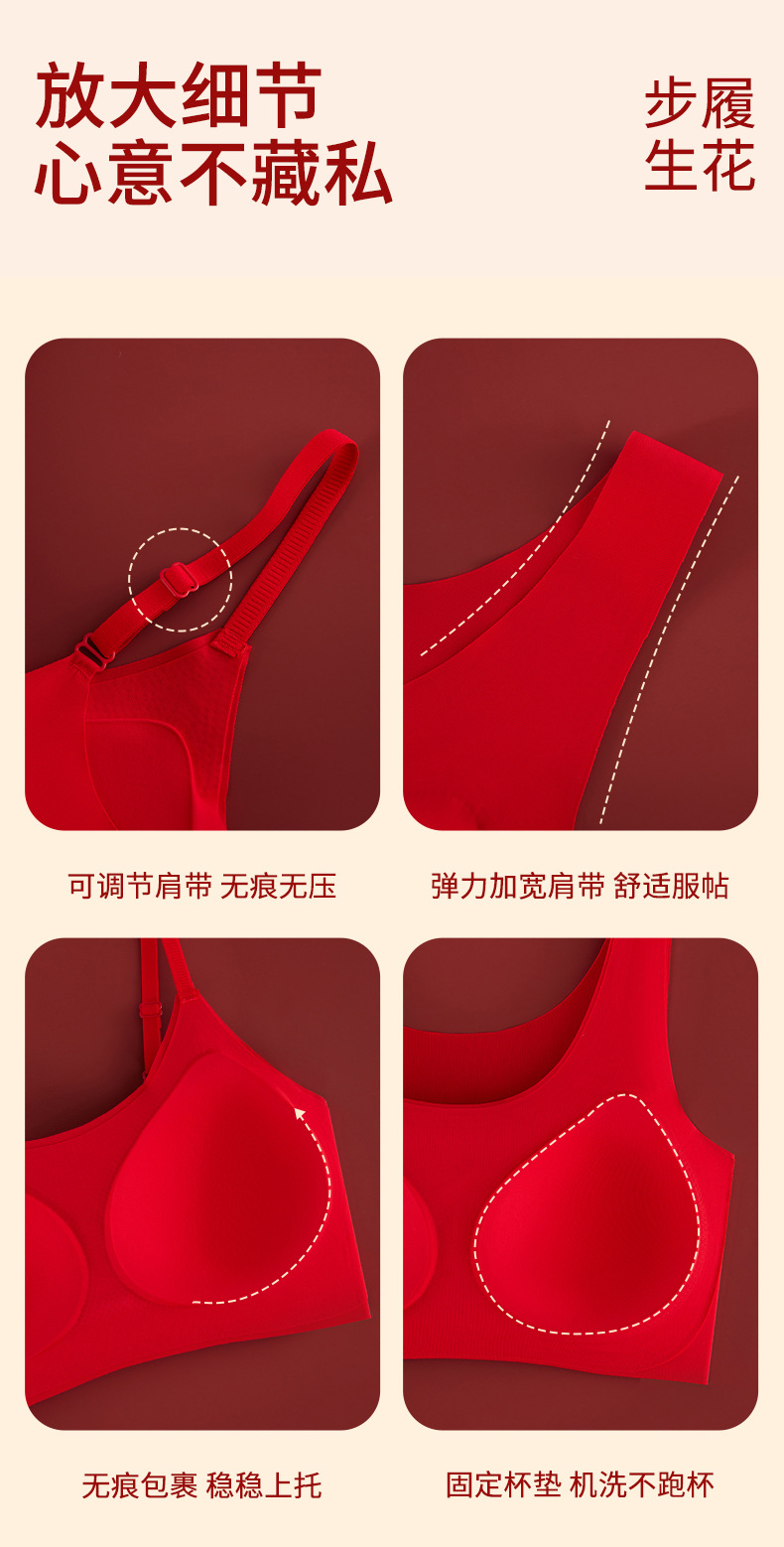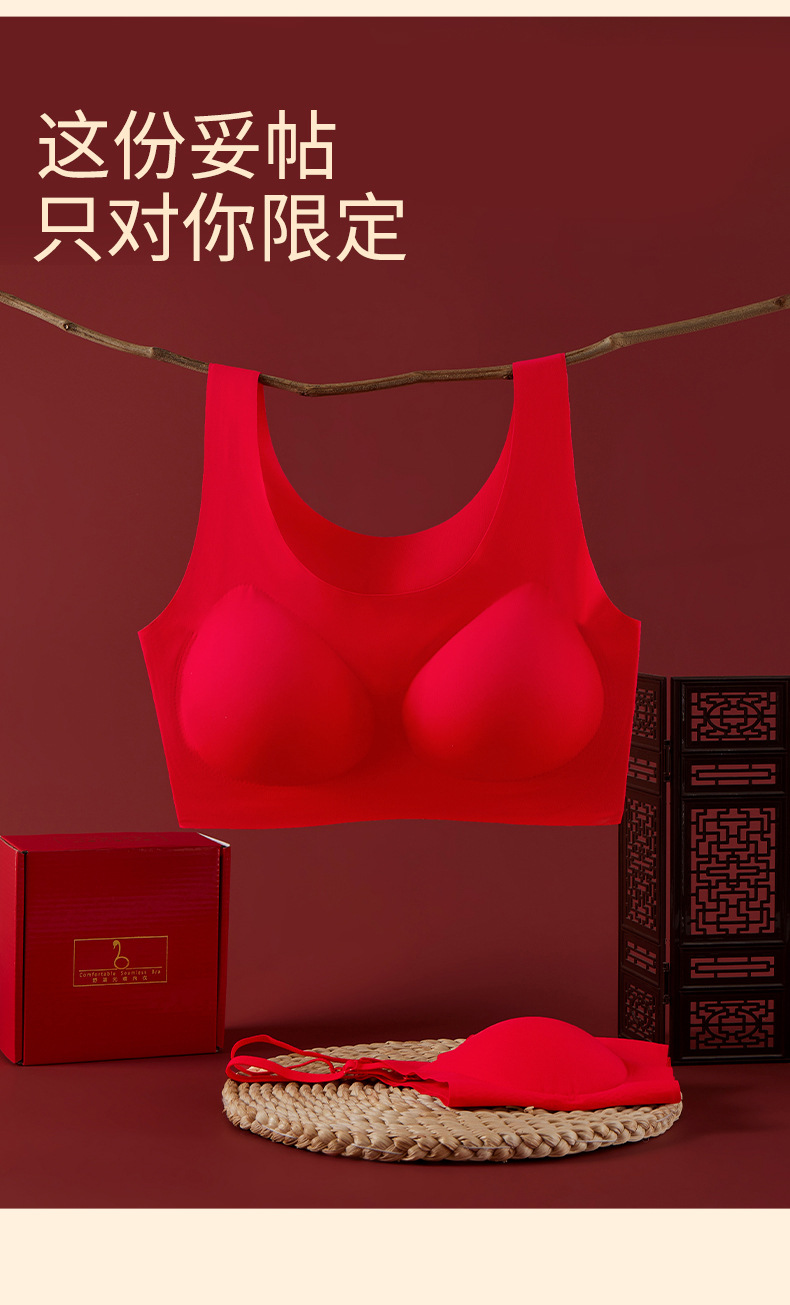 Красное нижнее белье для женщин с большой грудью в год зодиака, бесшовный пуш-ап и вспомогательное уменьшение груди, полностью фиксированный без проводов комплект