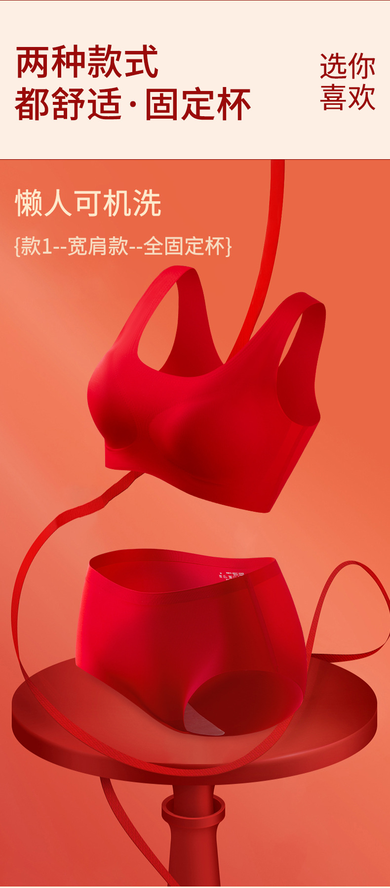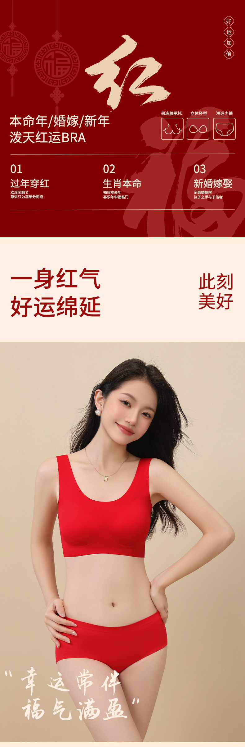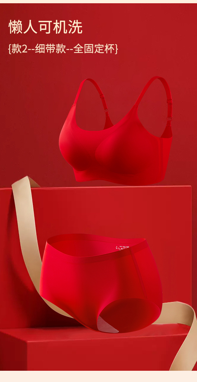Красное нижнее белье для женщин с большой грудью в год зодиака, бесшовный пуш-ап и вспомогательное уменьшение груди, полностью фиксированный без проводов комплект