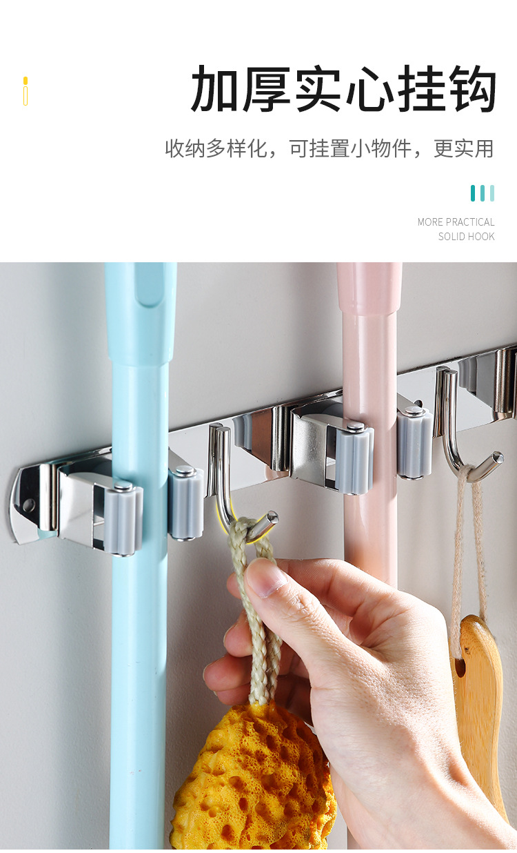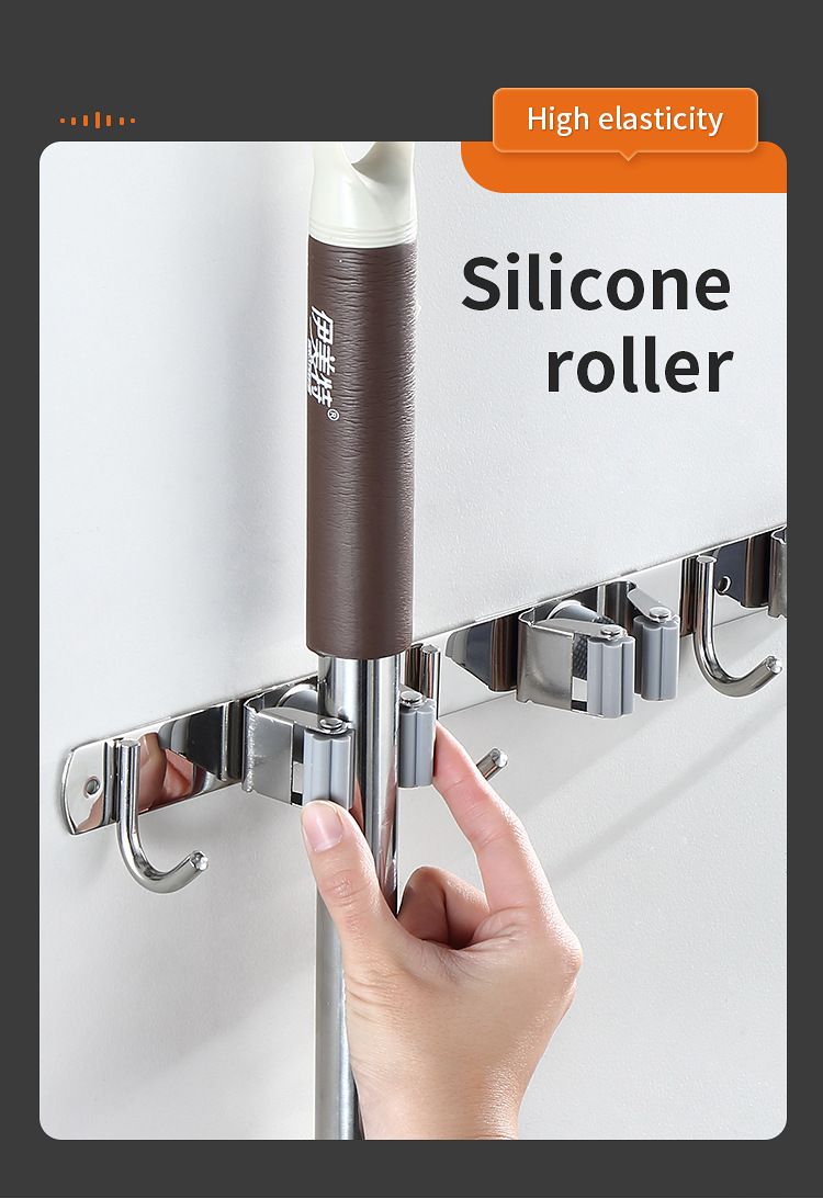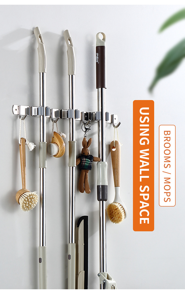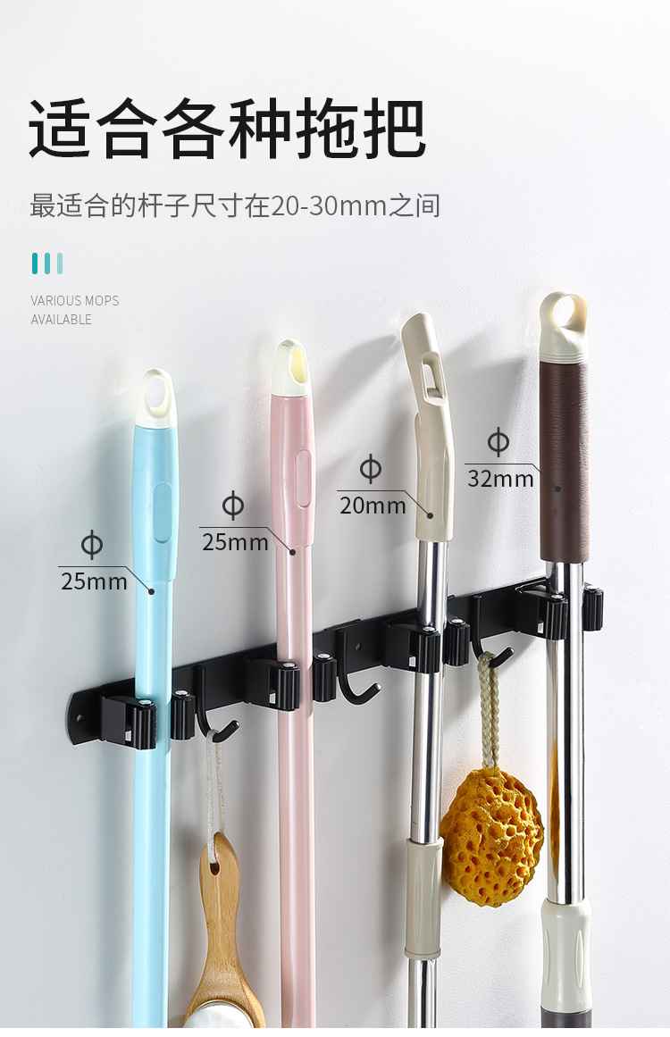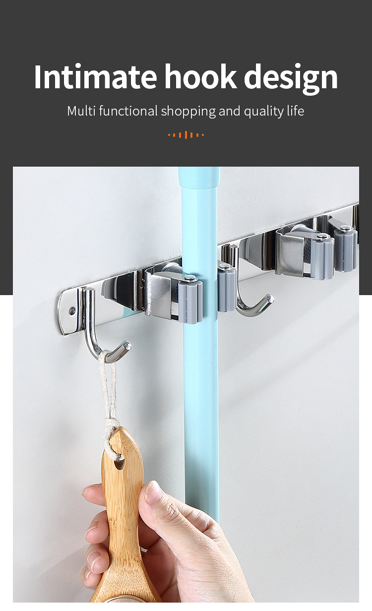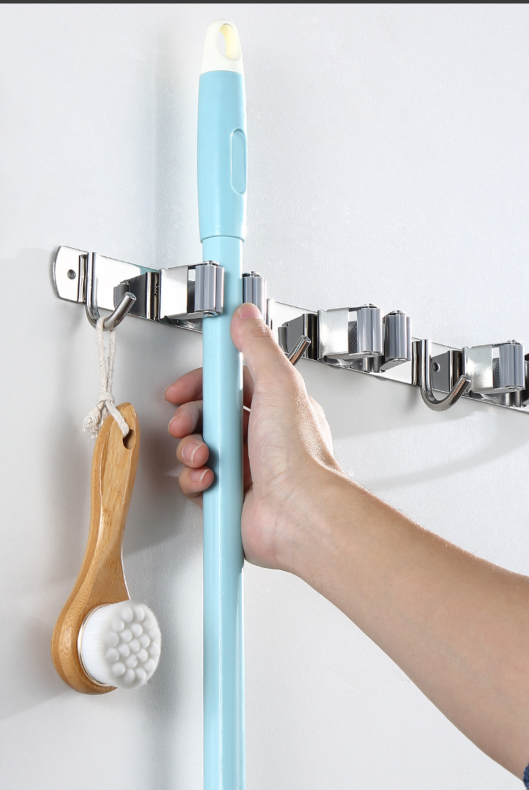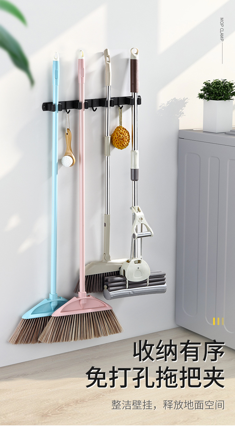 Черный крючок для швабры без сверления, клипса из нержавеющей стали 304, настенный держатель для швабры, клейкий крючок