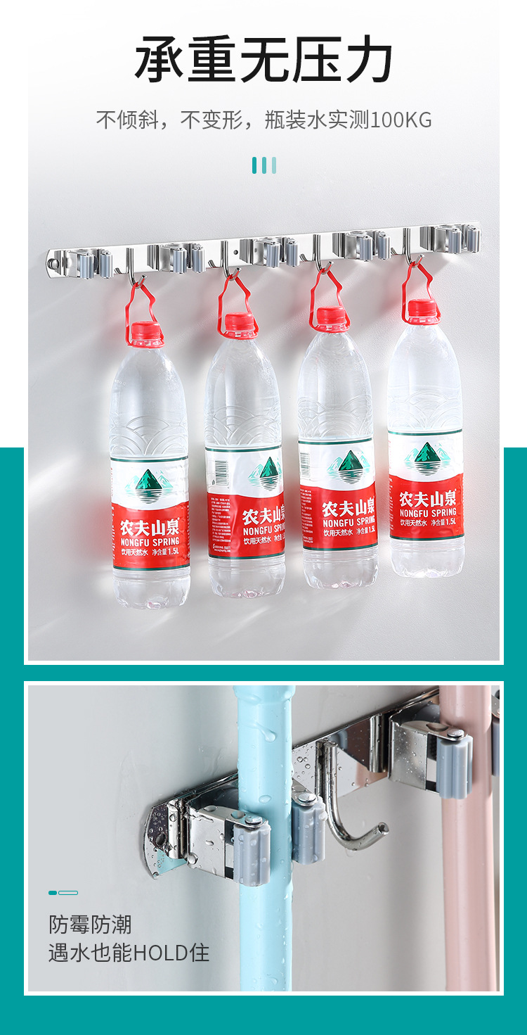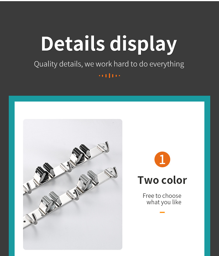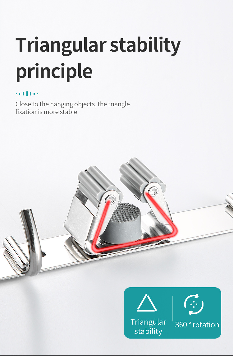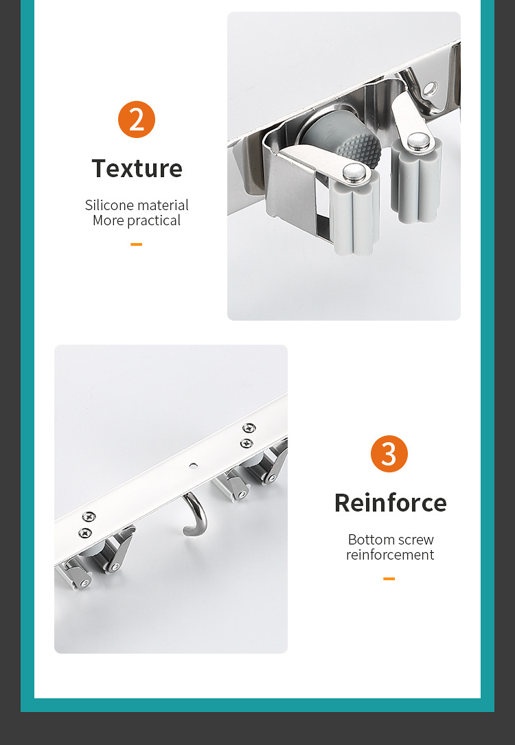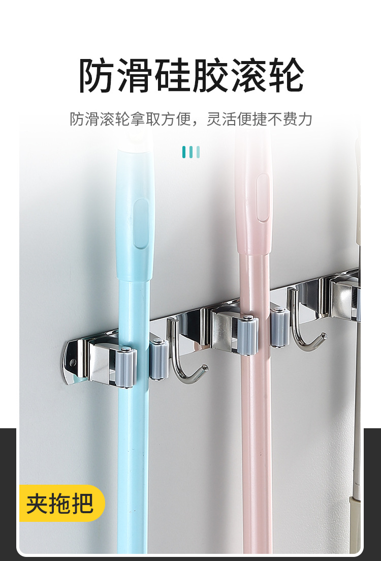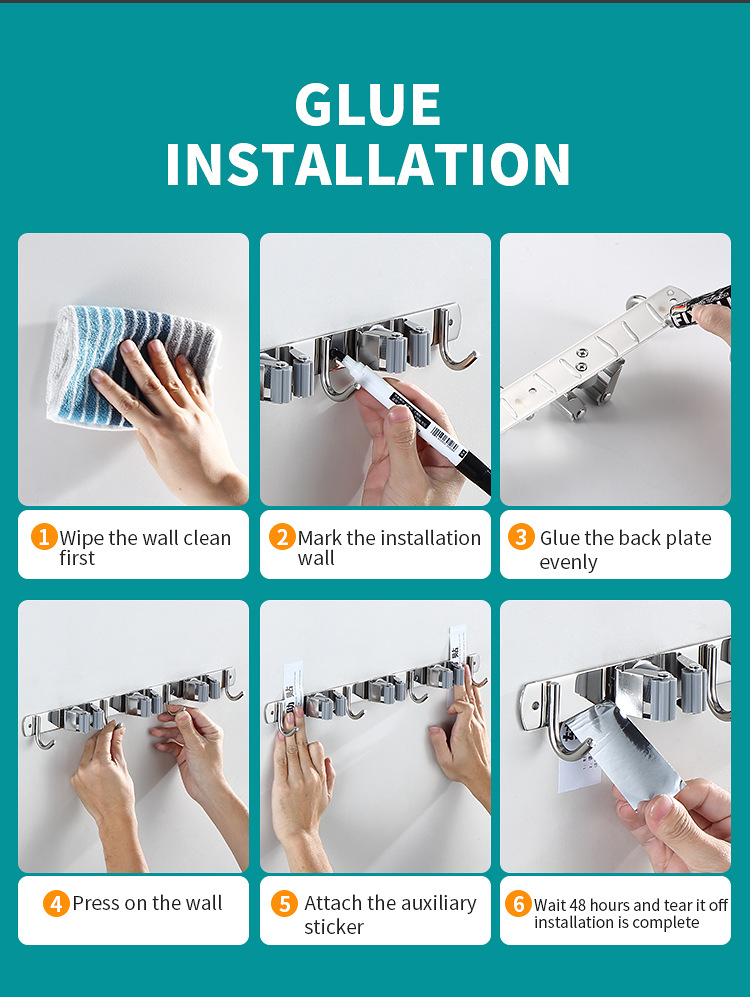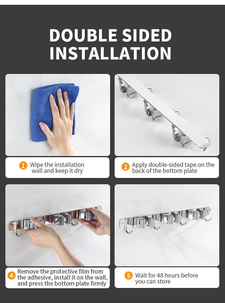 Черный крючок для швабры без сверления, клипса из нержавеющей стали 304, настенный держатель для швабры, клейкий крючок
