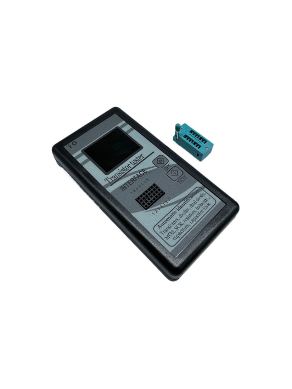 2:自动检测PNP和NPN型双极晶体管,N、P沟道MOSFET,JFET场效应管,二极管,双二极管,可控硅,电阻,电容,电感。自动检测引脚定义。